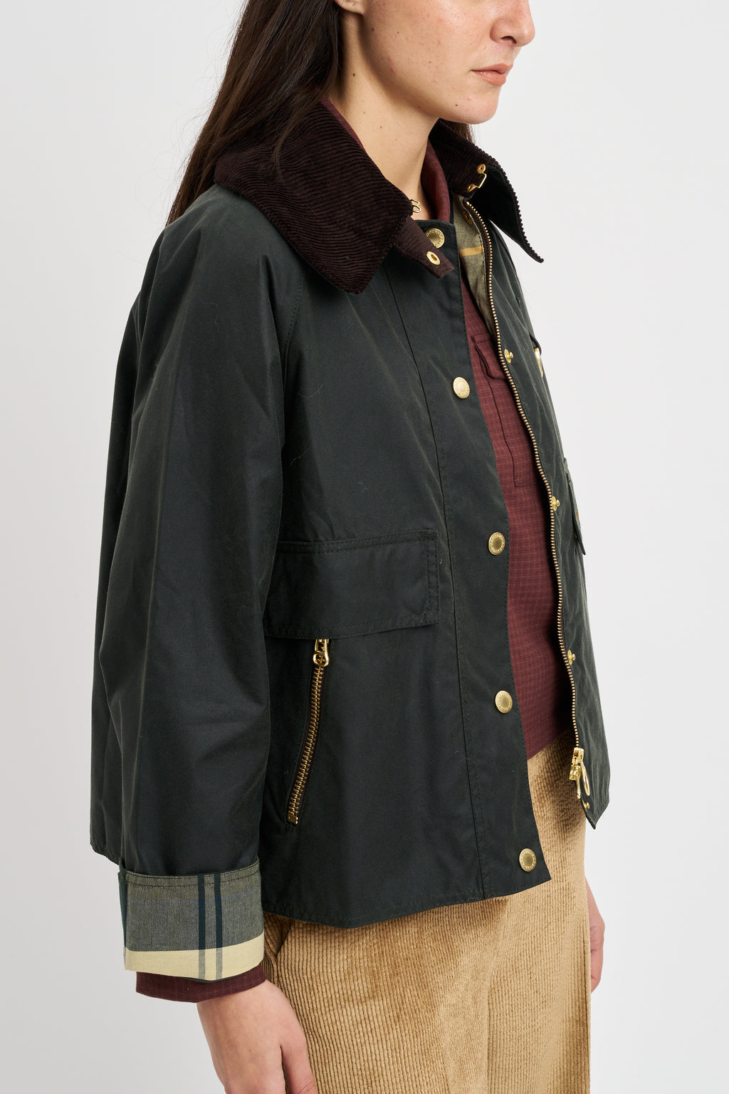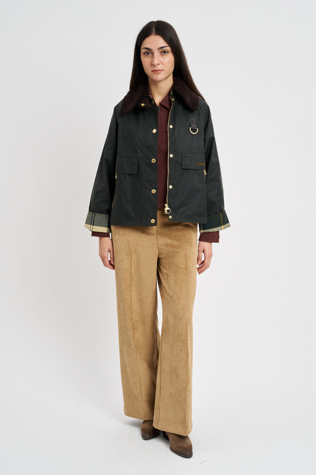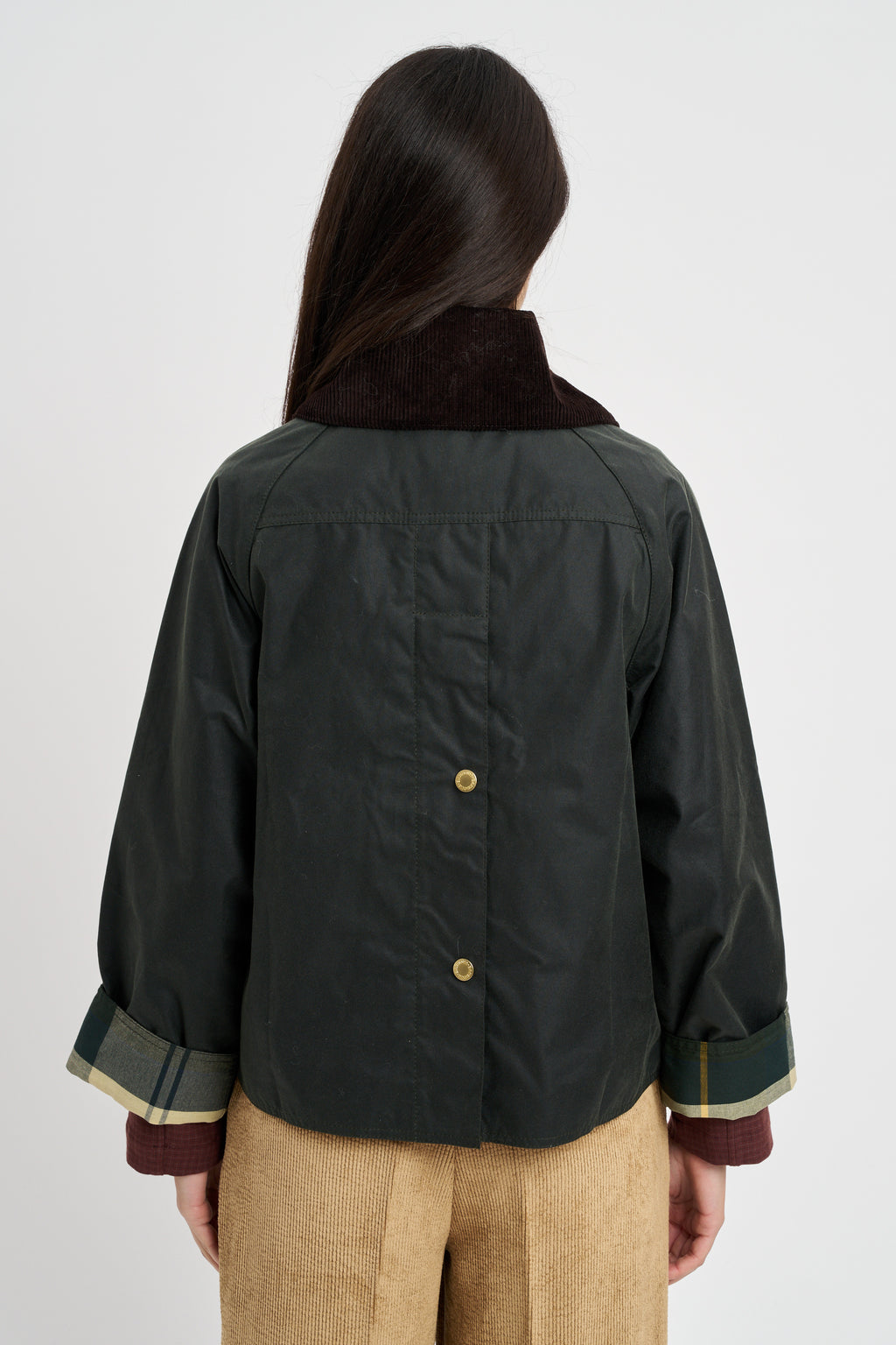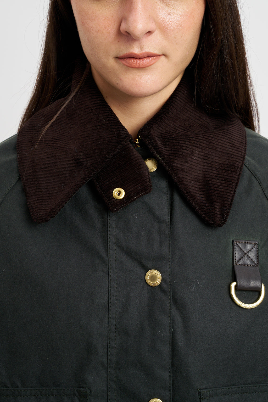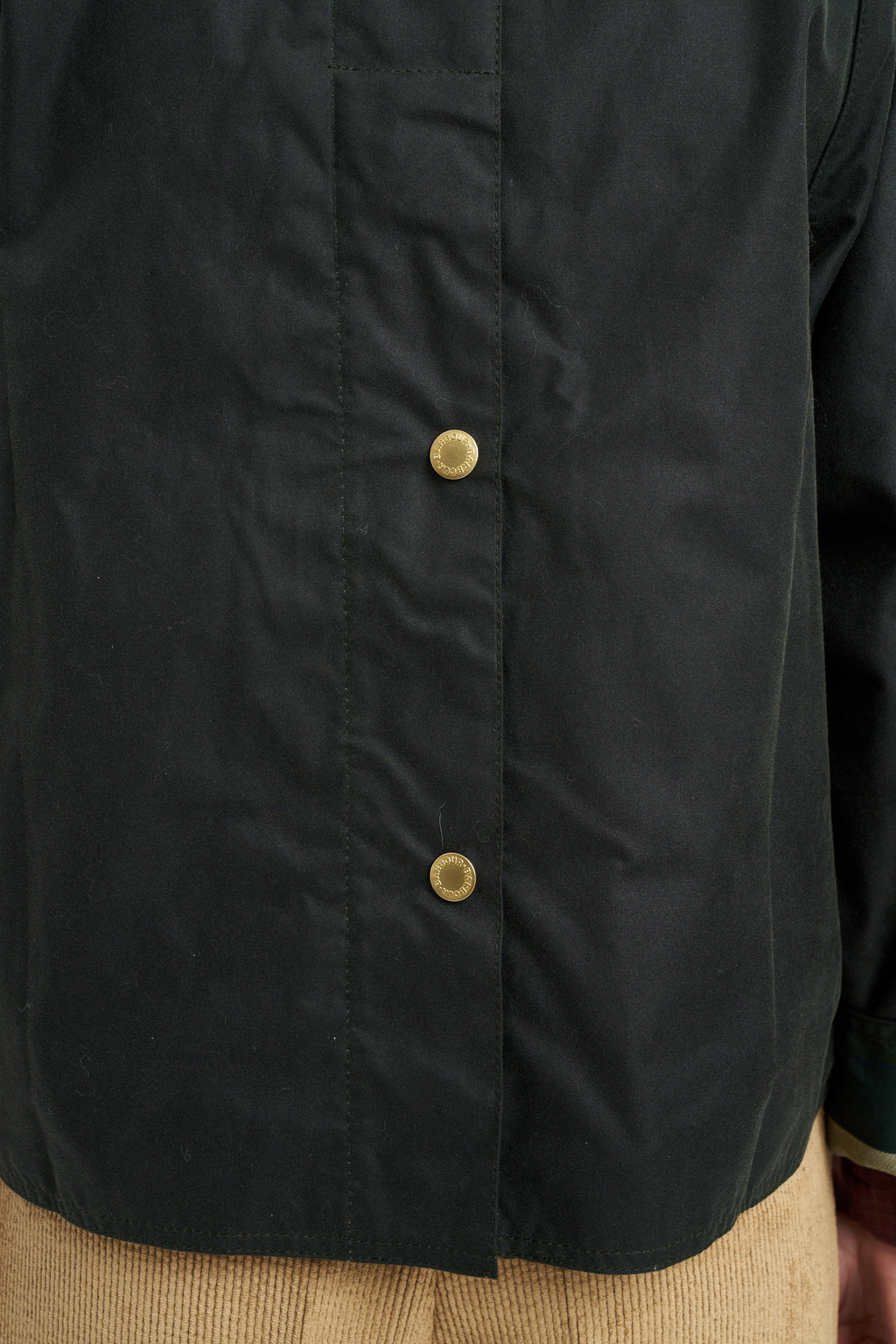 L’abile gioco di proporzioni della giacca cerata Catton di Barbour dà vita a un’icona dello stile outerwear contemporaneo. Tratti distintivi di questo modello a maniche lunghe sono il colletto in velluto a coste oversize, il vistoso anello a D sul petto e il maxi tassello con bottoni a pressione sulla parte posteriore. Delle tasche capienti con cerniera dal look contemporaneo completano il capo.