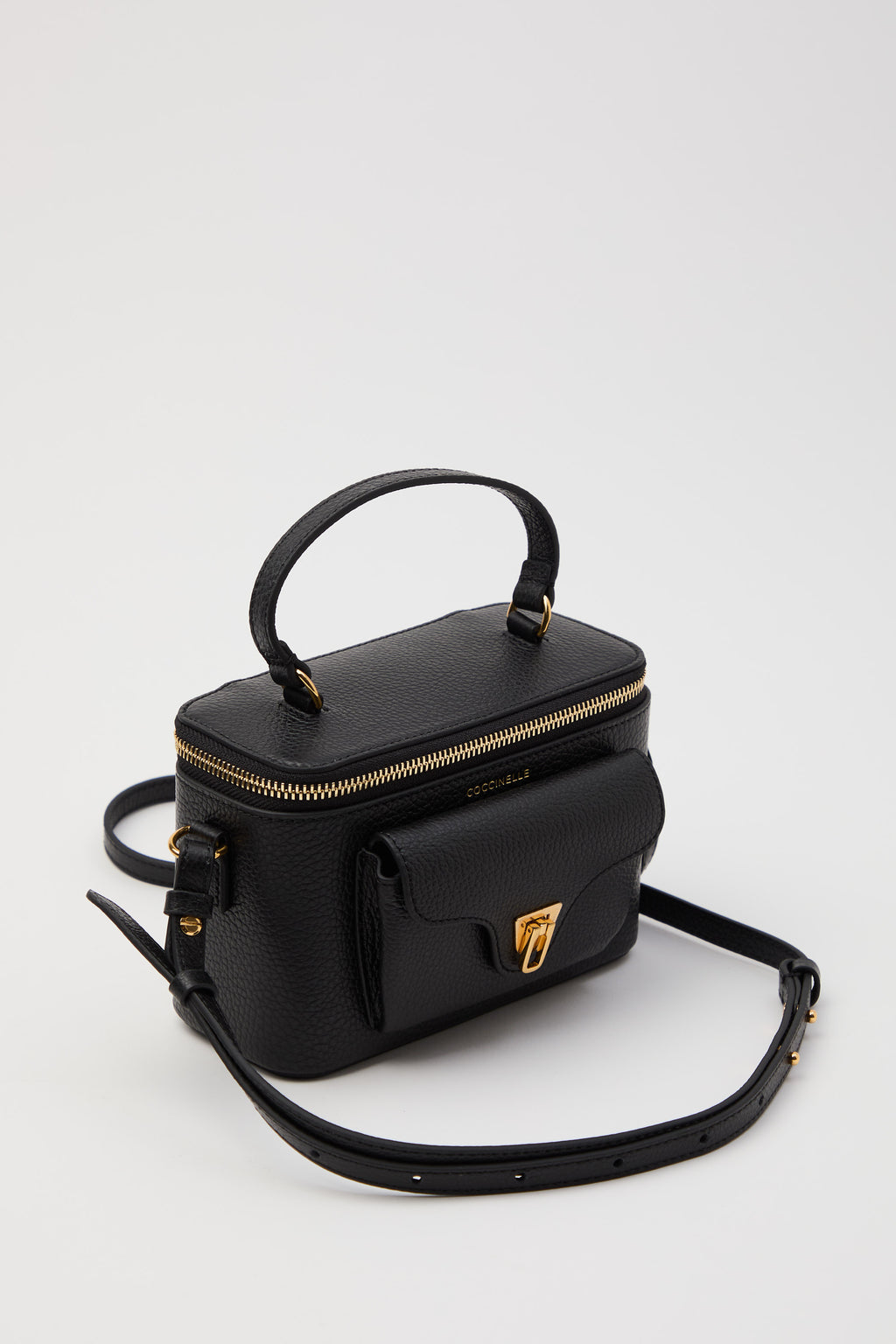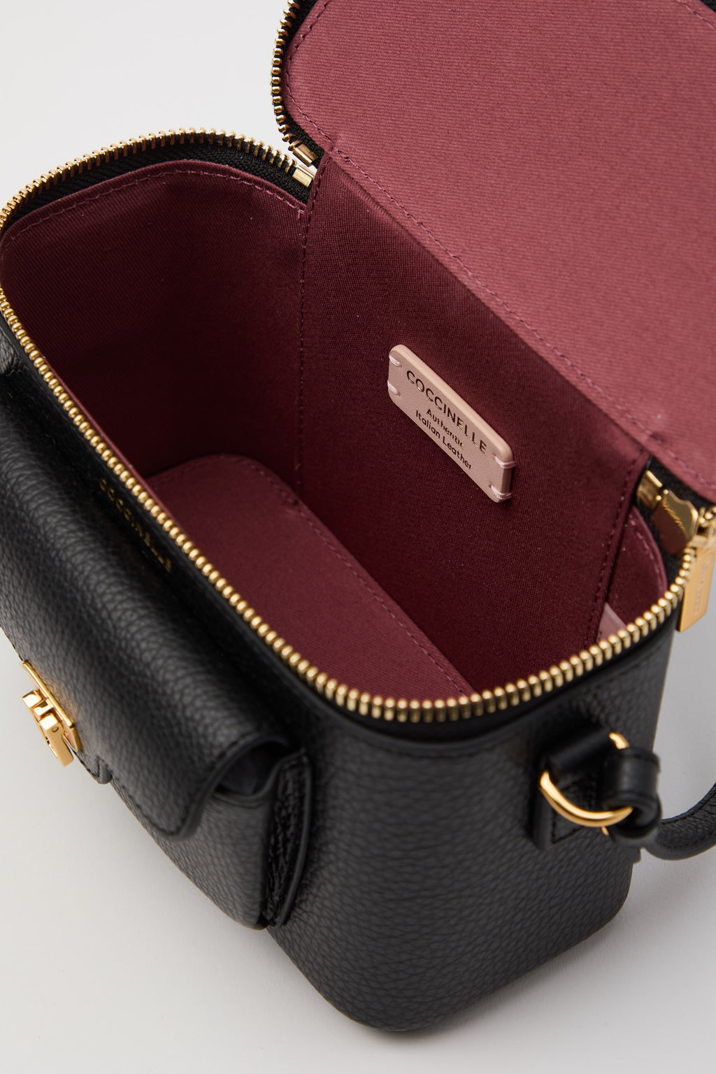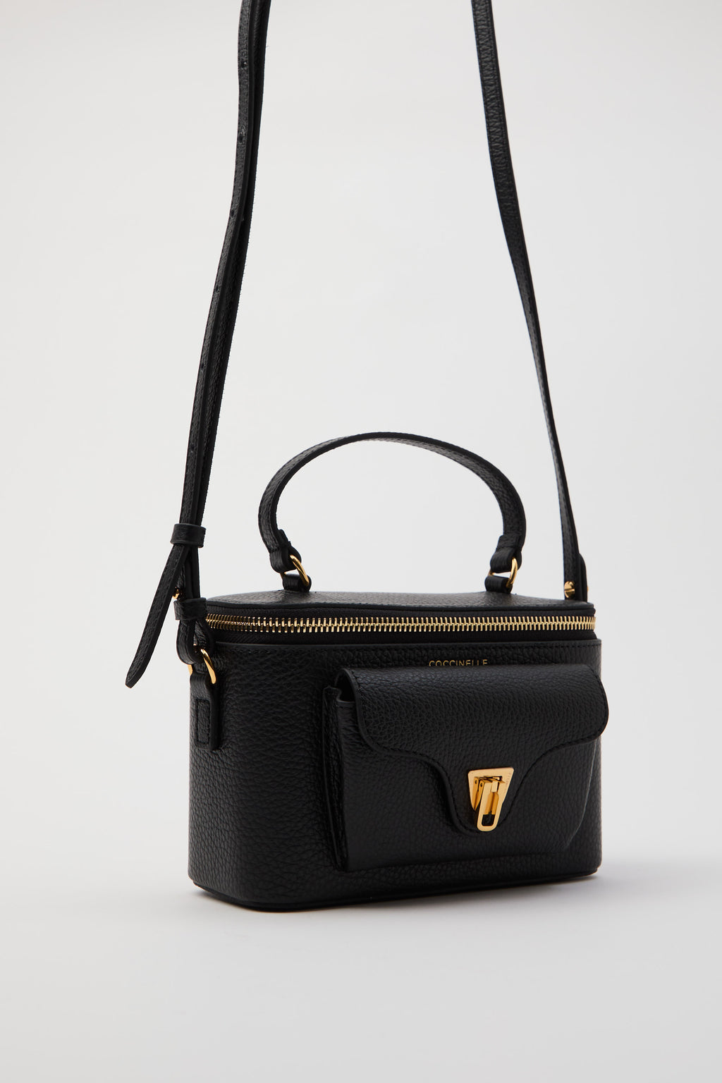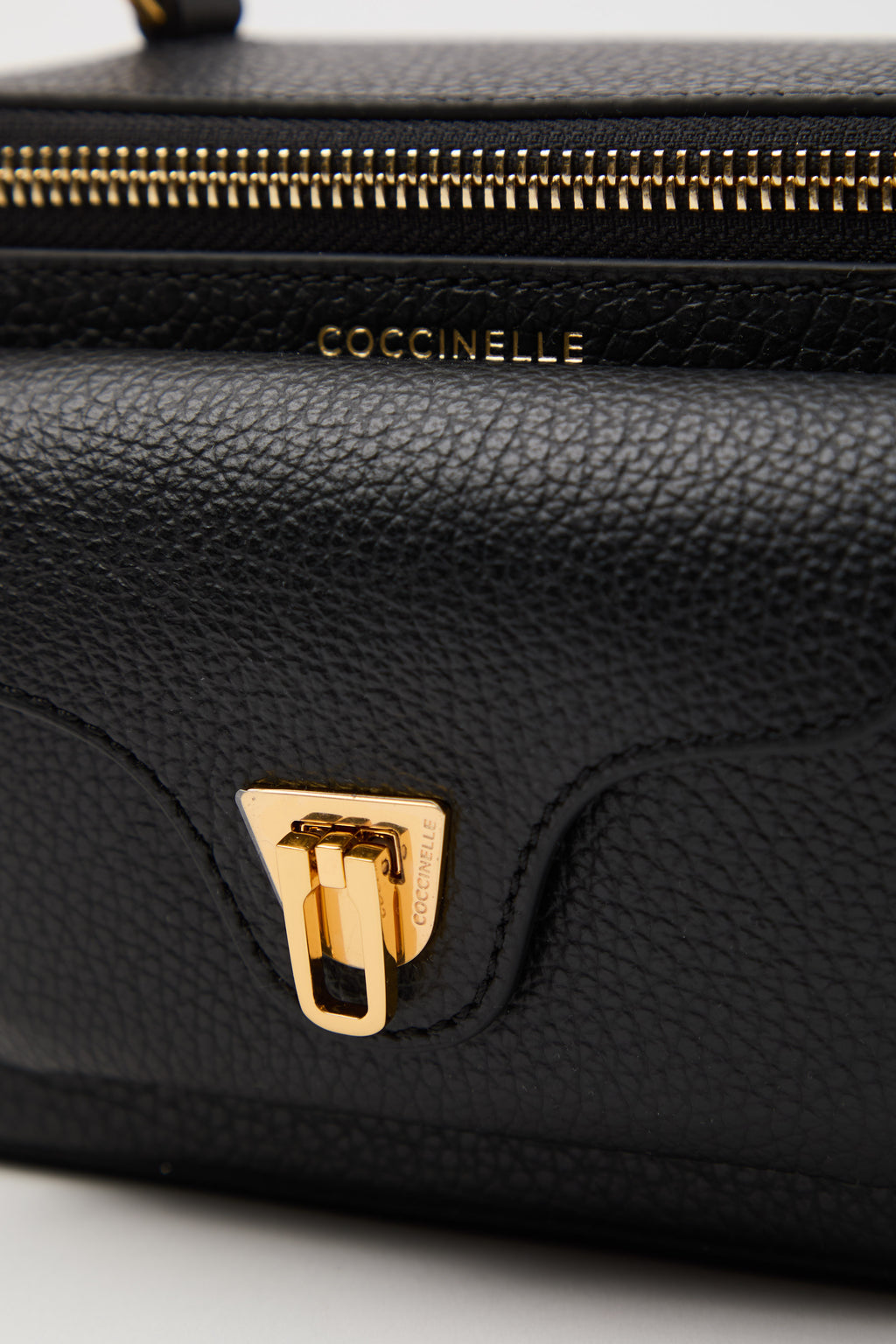 Coccinelle Beat è una tra le icone del brand: la distintiva chiusura a battente con il plettro è il simbolo d’identità Coccinelle. Il mini vanity case con tracolla in pelle è un mix perfetto tra struttura e morbidezza, tra praticità e design contemporaneo. Questo modello è realizzato in pelle lavorata tramite specifici macchinari e poi bottalata al fine di mantenerne la morbidezza. È una pelle molto resistente che si presta a una facile pulizia, ideale per un uso quotidiano.