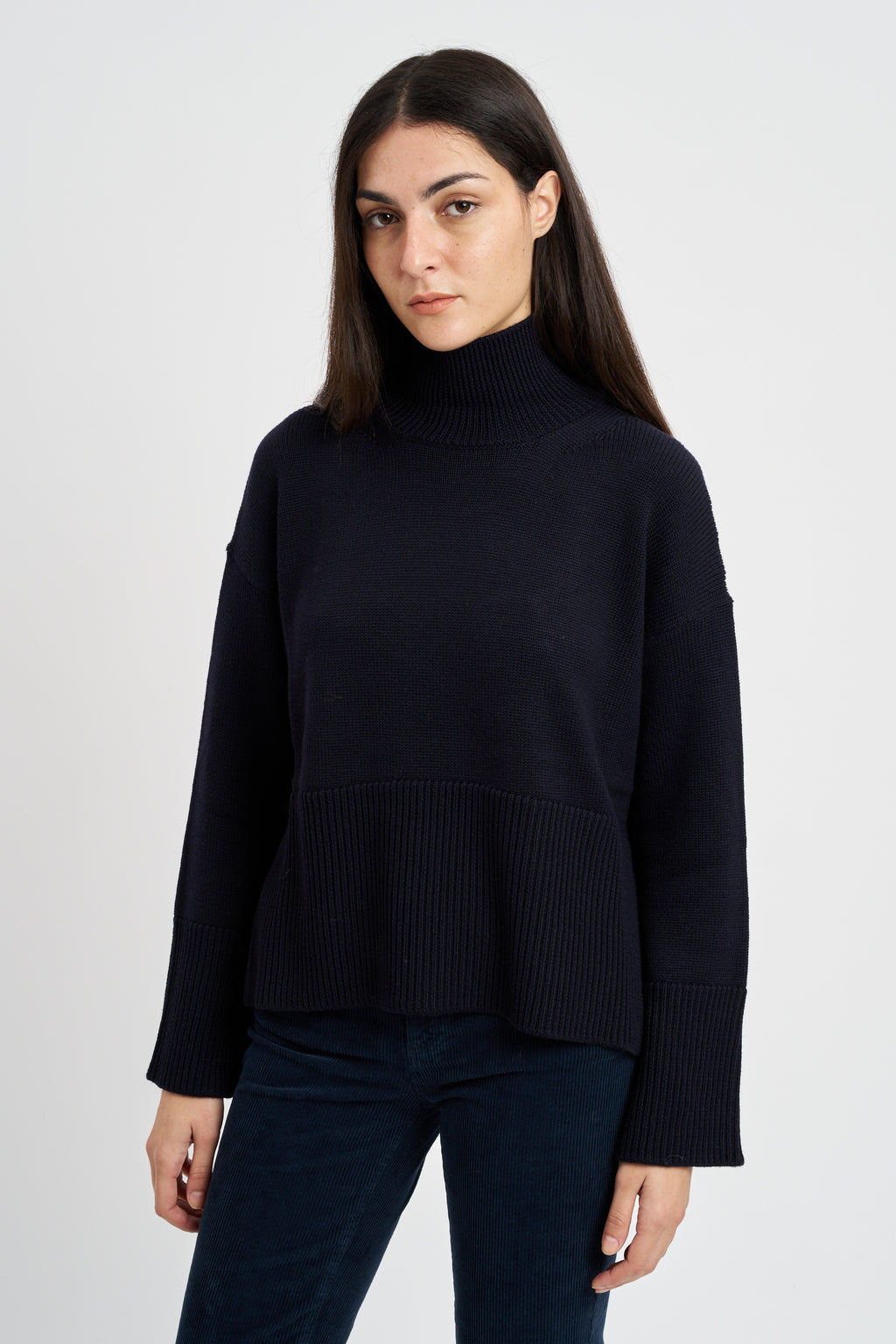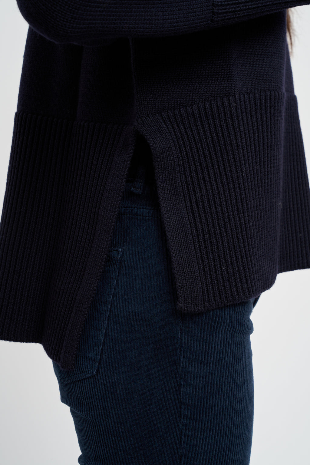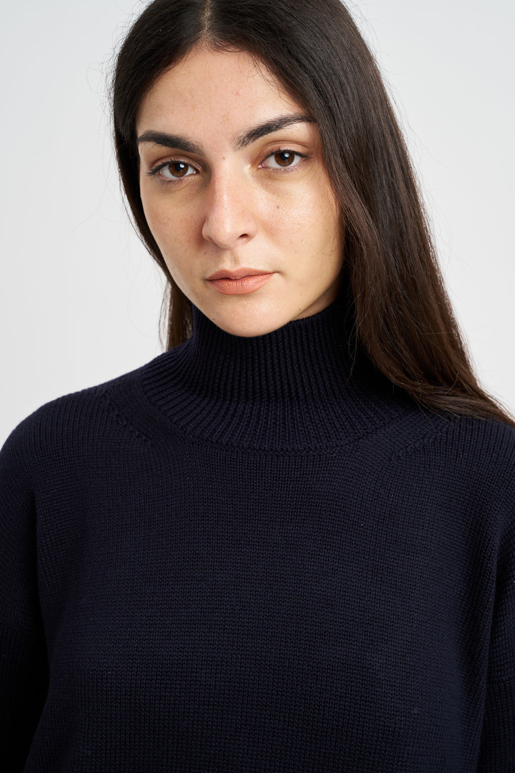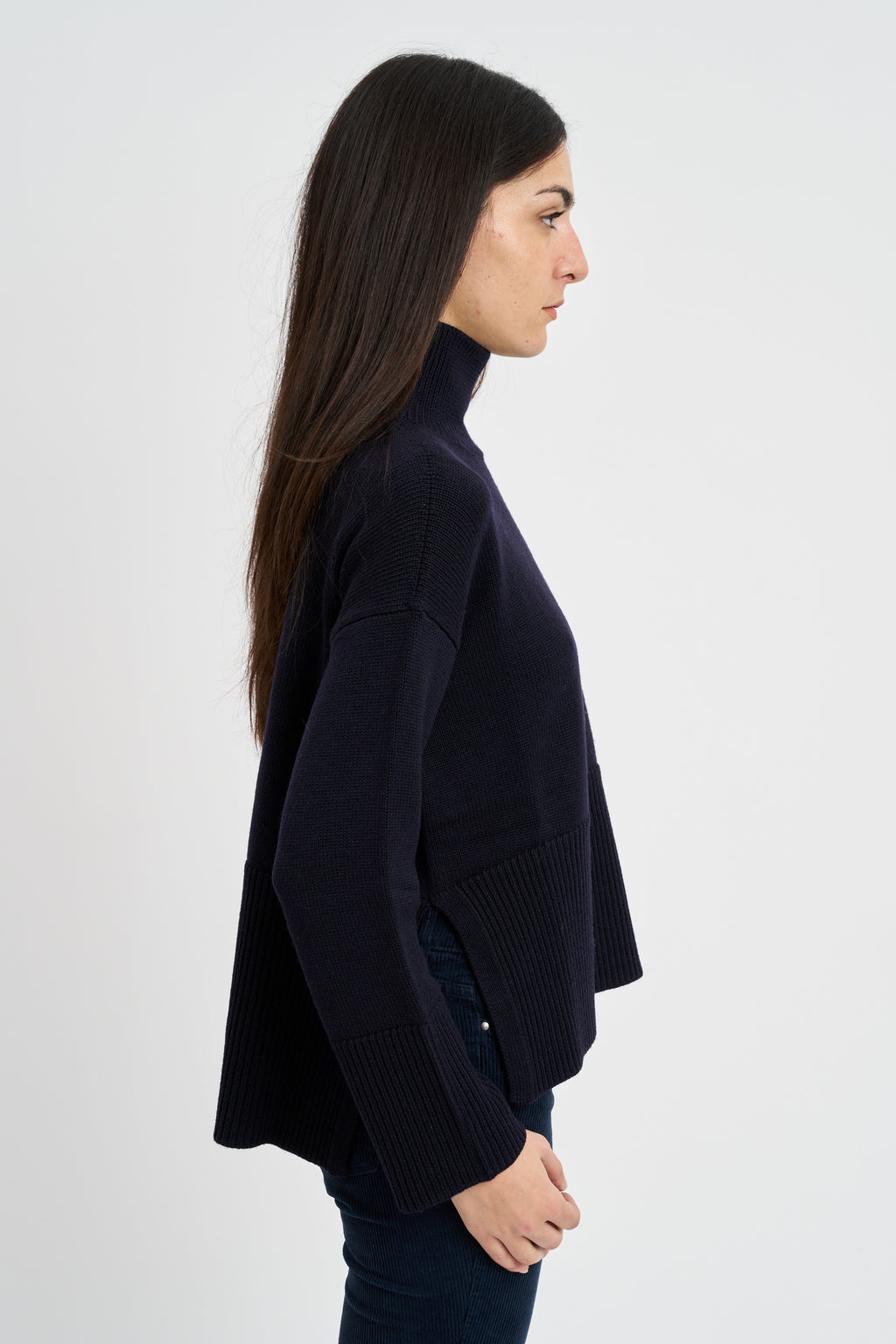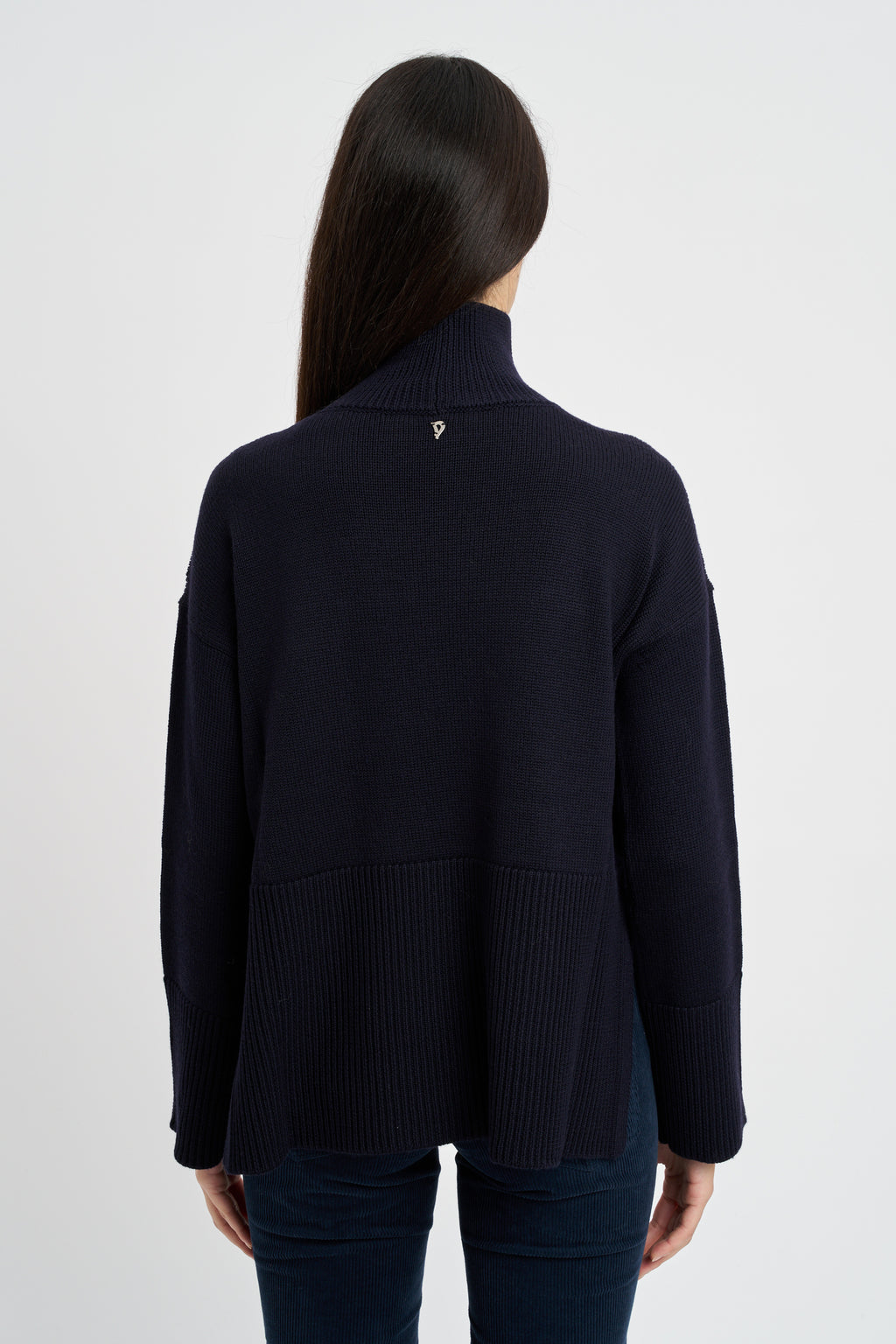 Maglia dolcevita over a maniche lunghe con spacchi laterali e logo applicato sul dietro. Basico lana. Logo Dondup. Made in Italy