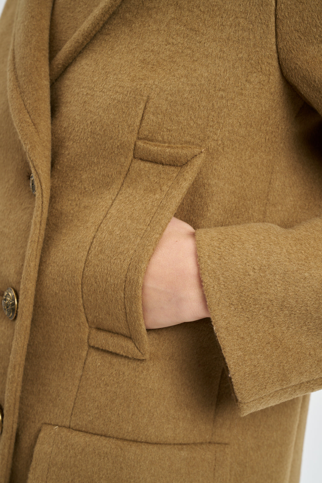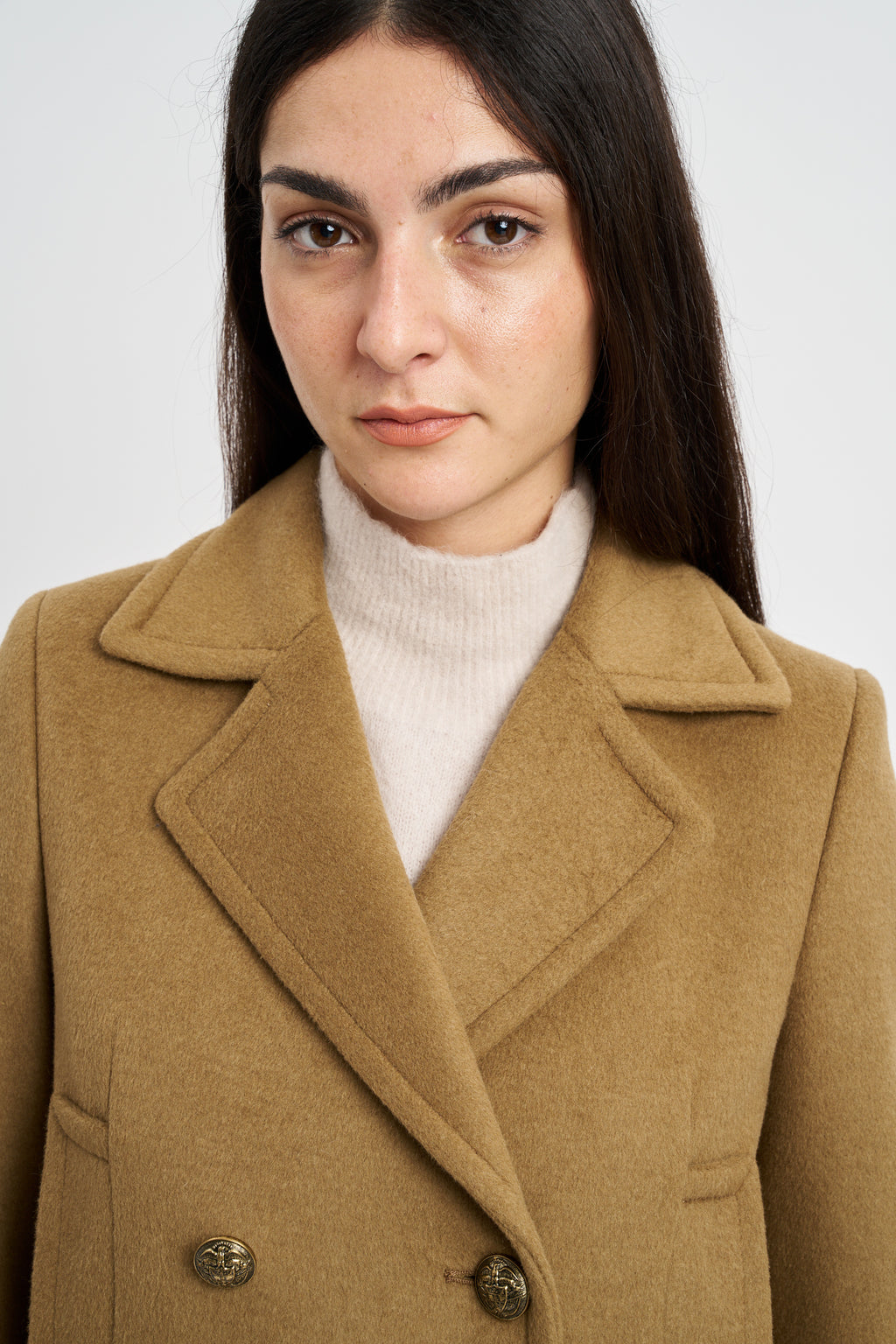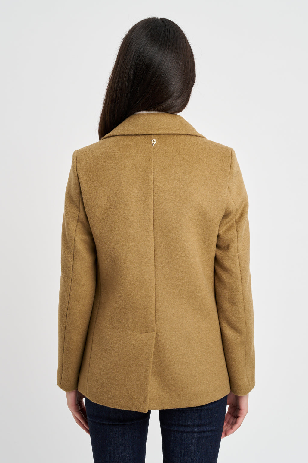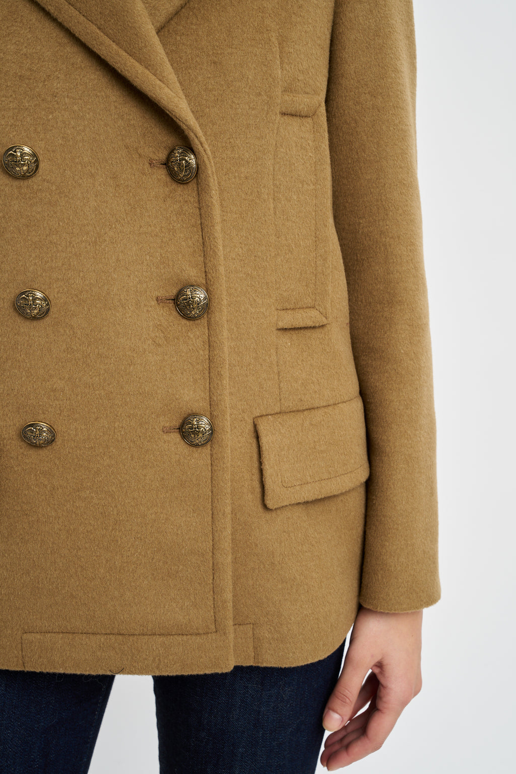Peacoat doppiopetto regular a sei bottoni gioiello, con tasche a filetto e tasche con pattina. Velour misto lana. Logo Dondup. Made in Italy