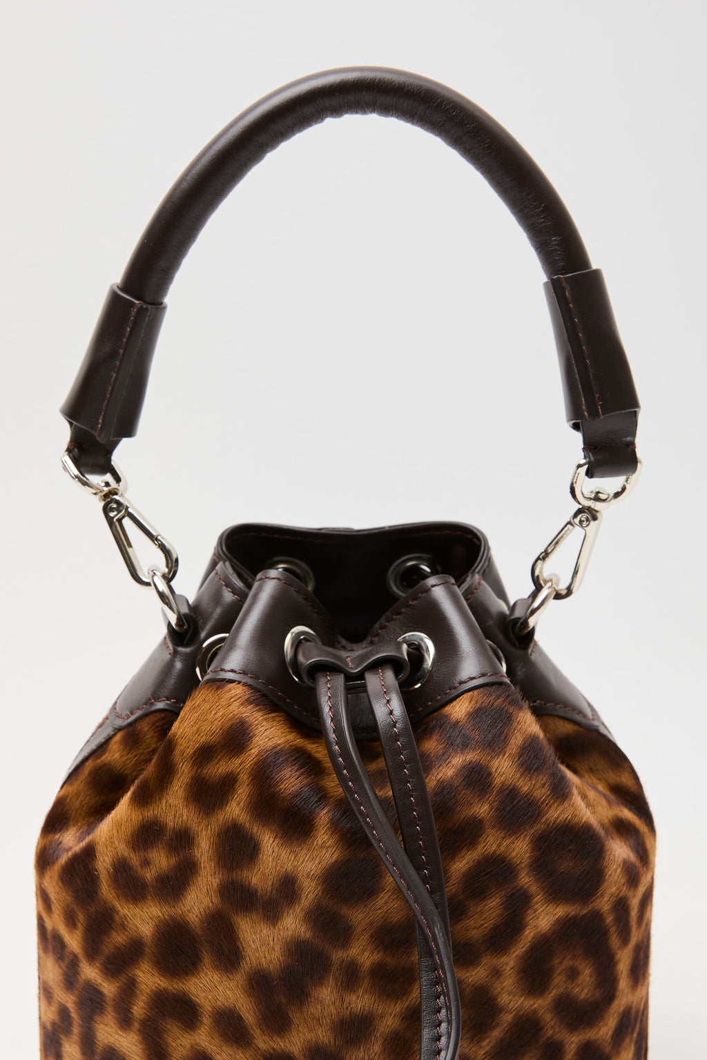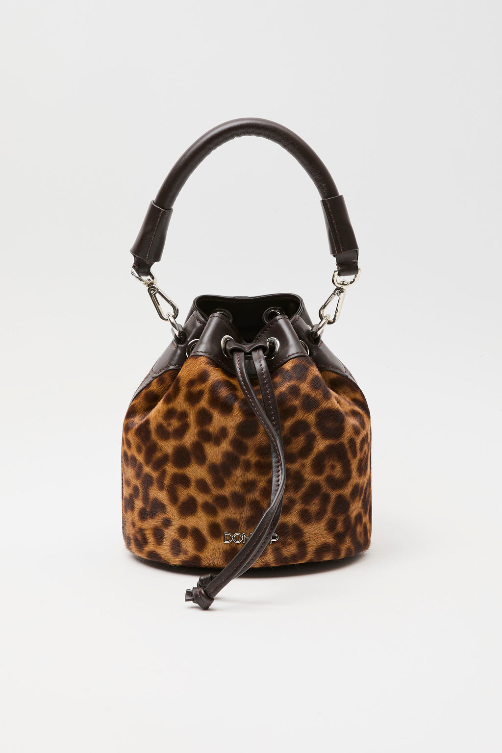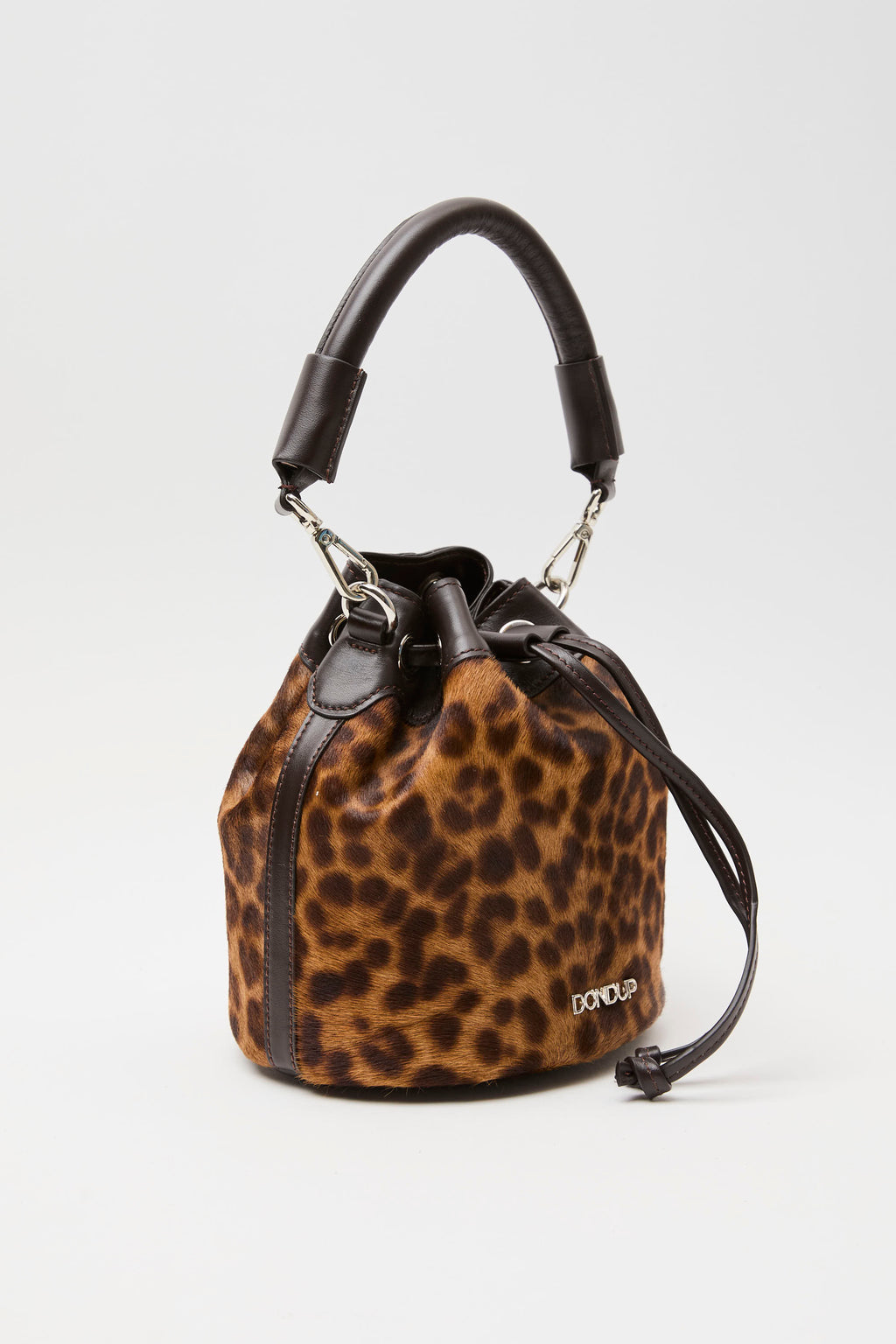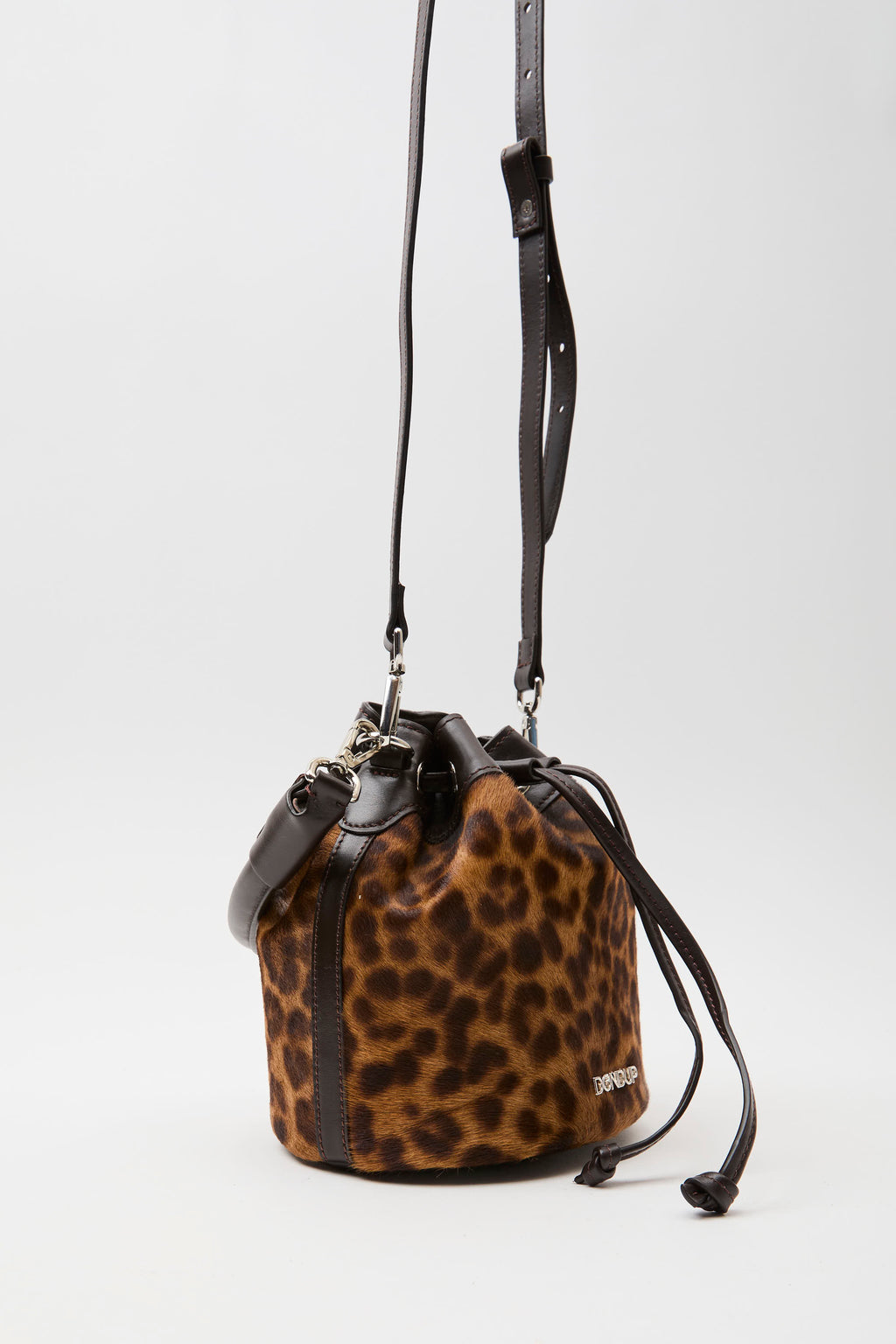 Secchiello con manico removibile e tracolla di servizio staccabile e logo metallico sul davanti. maculato. Logo Dondup. Made in Italy