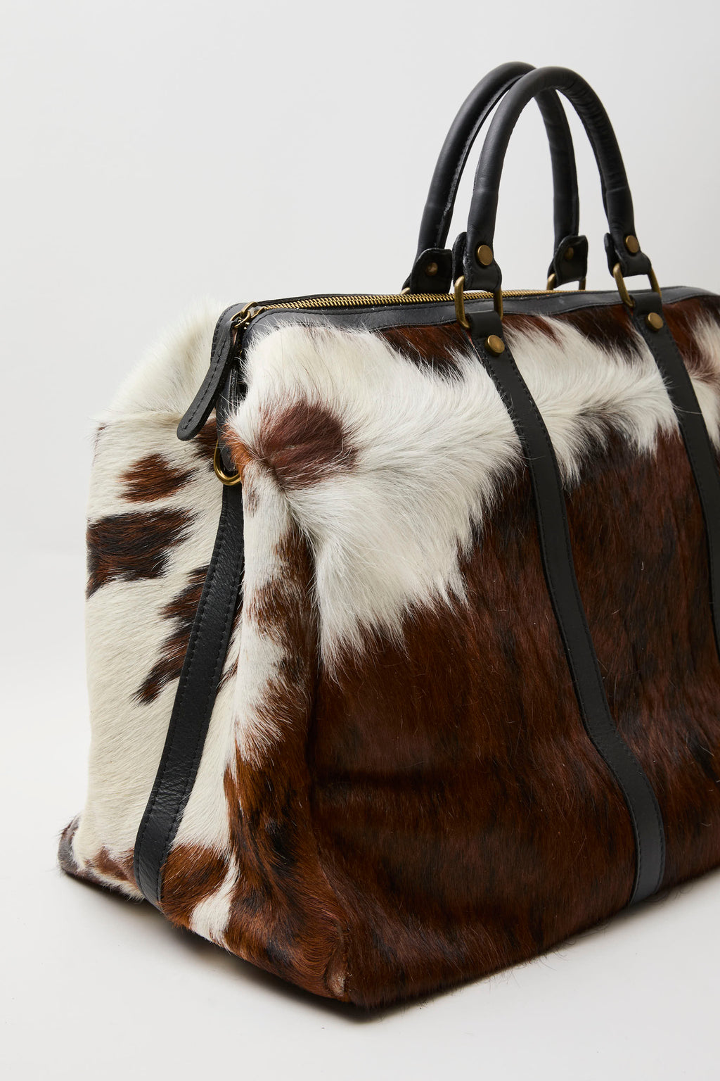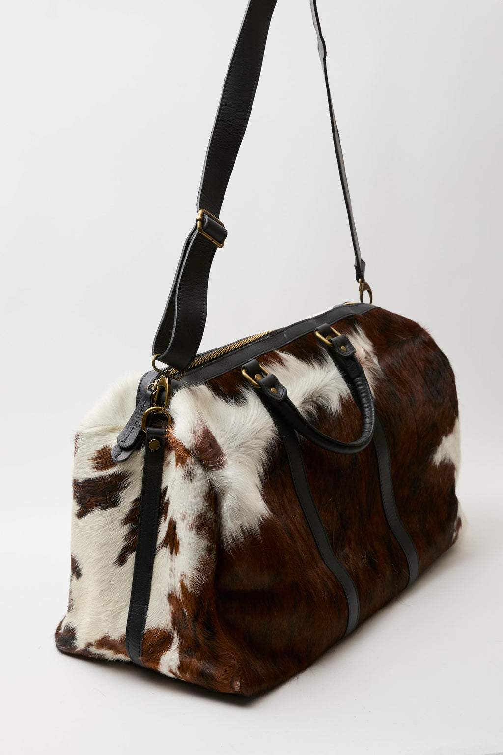 Borsone in cavallino stampa Mucca, tracolla inclusa.