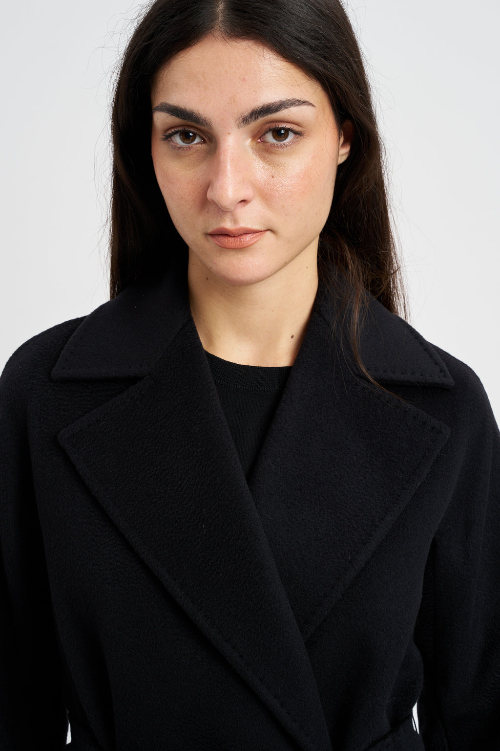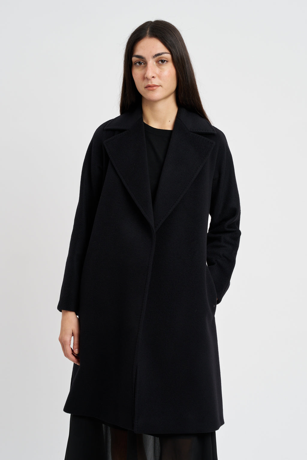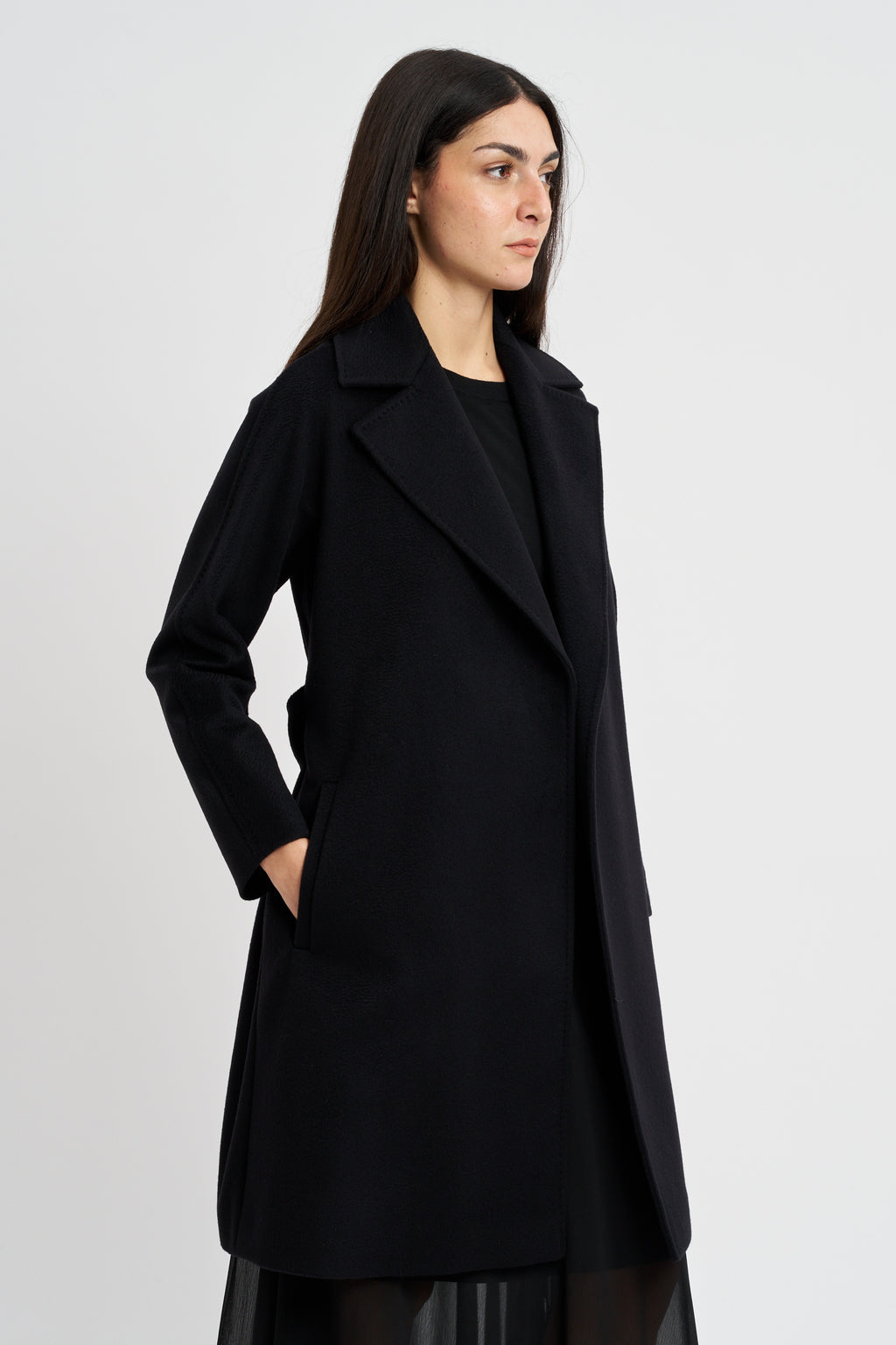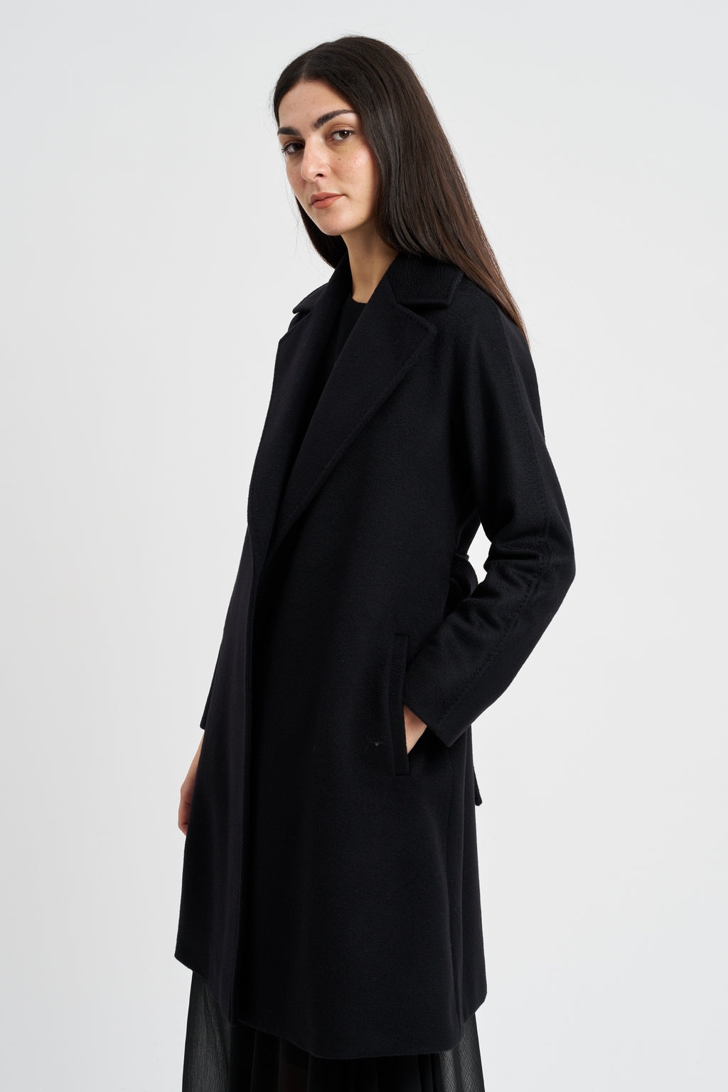 Cappotto midi a vestaglia, interamente rifinito con puntino sartoriale.