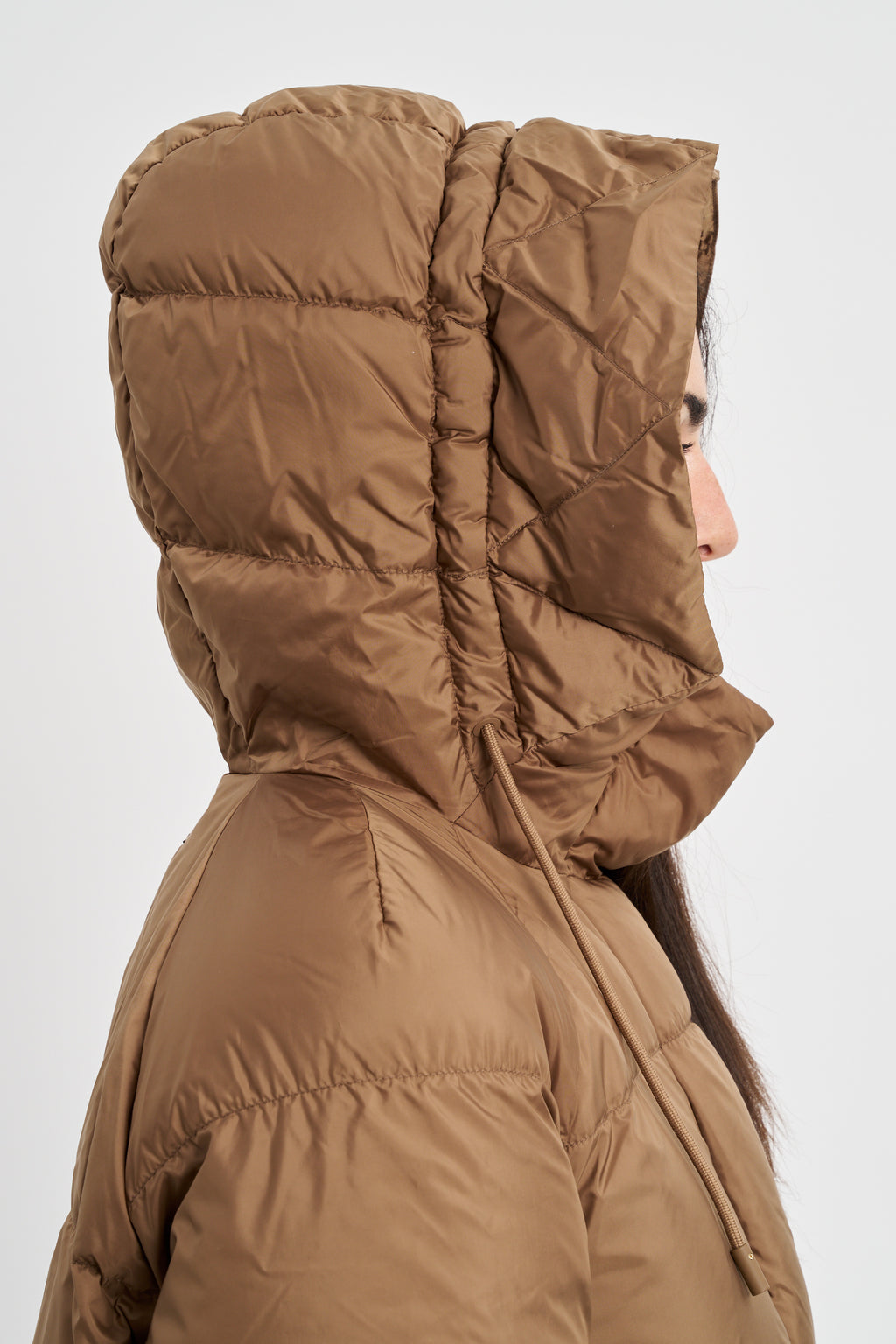 Parka midi reversibile con collo alto e cappuccio a coulisse, maniche raglan con polsino elastico e coulisse regolabile al fondo.