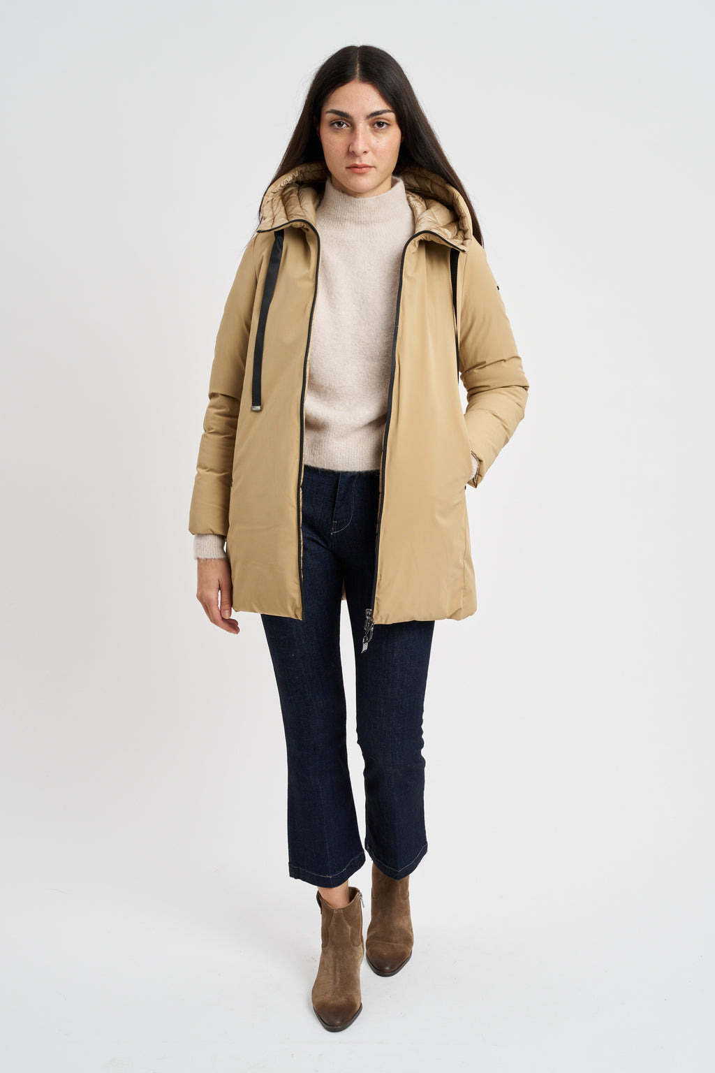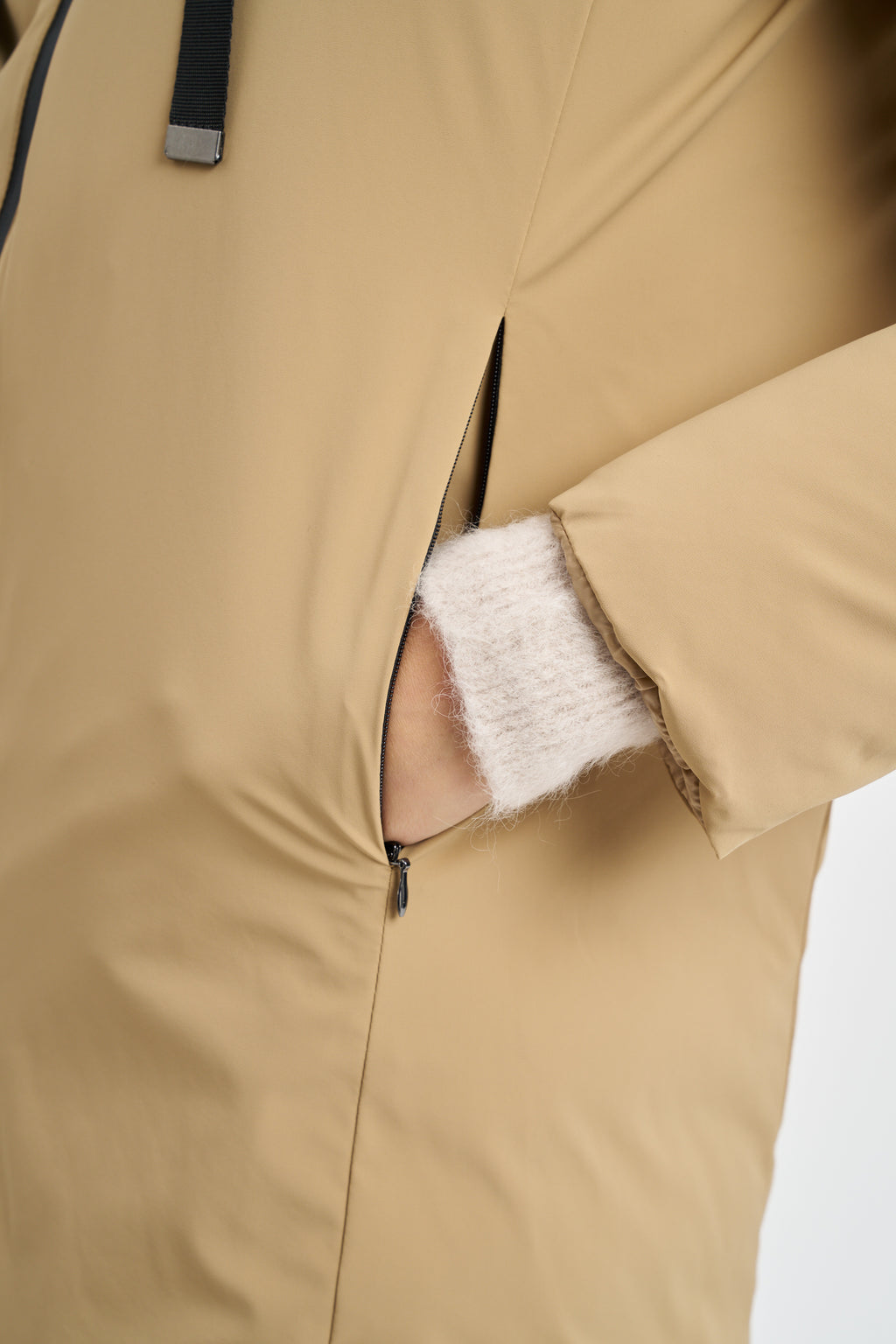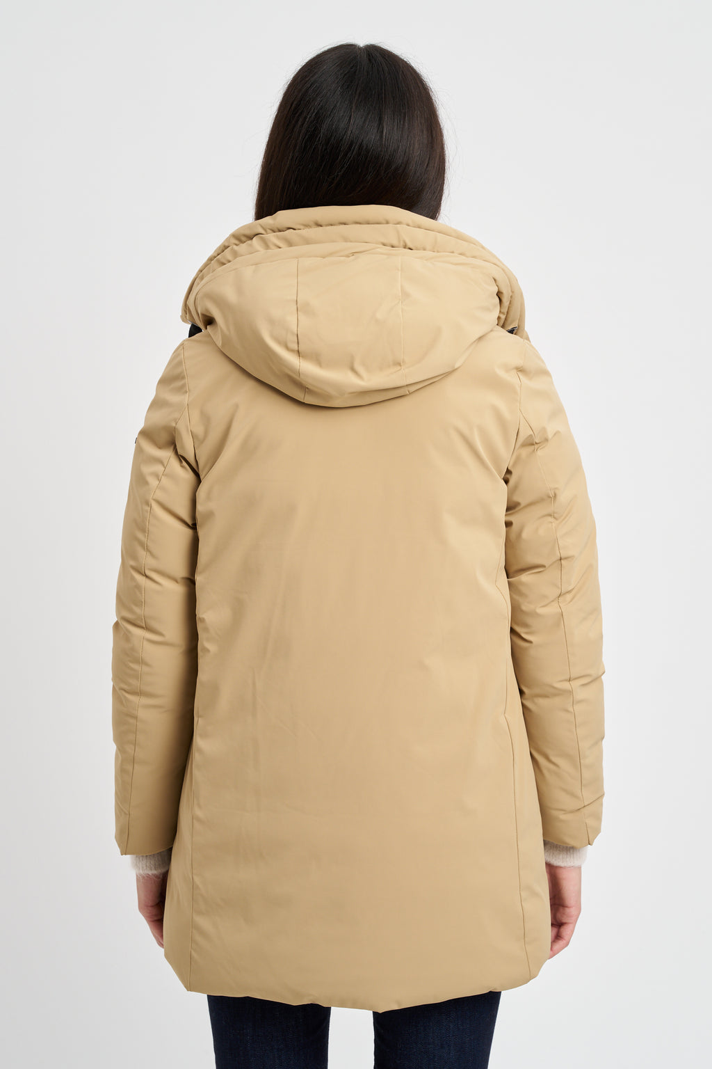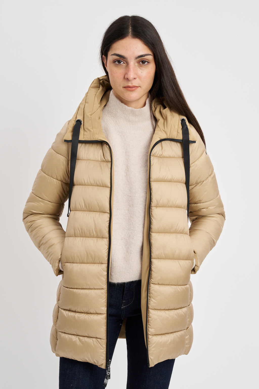 Piumino midi reversibile impermeabile. cappuccio con coulisse e doppia tasca a filetto.