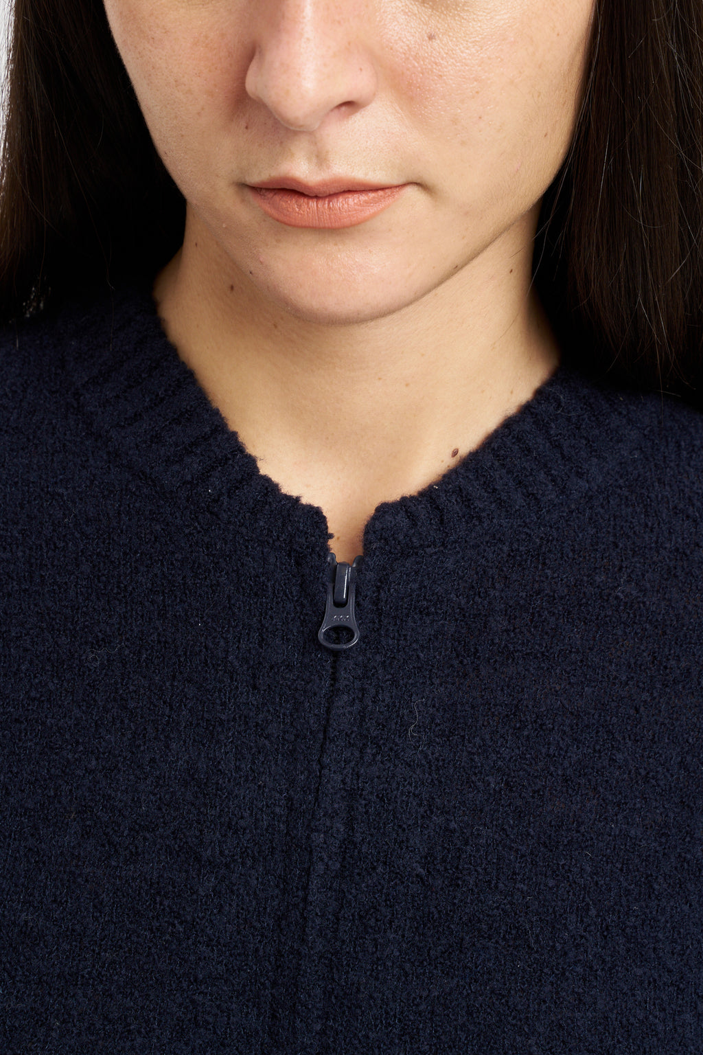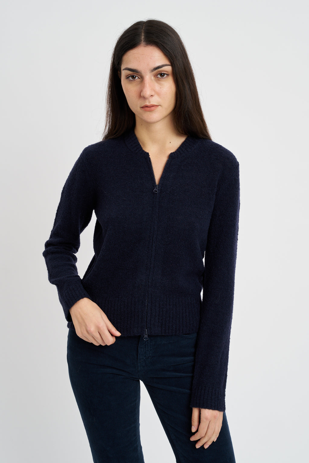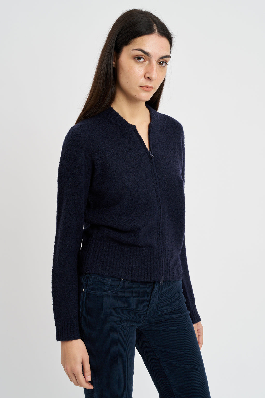 Giacca in bouclé di lana con chiusura con zip sul davanti, collo bomber, manica lunga e finiture a costine.