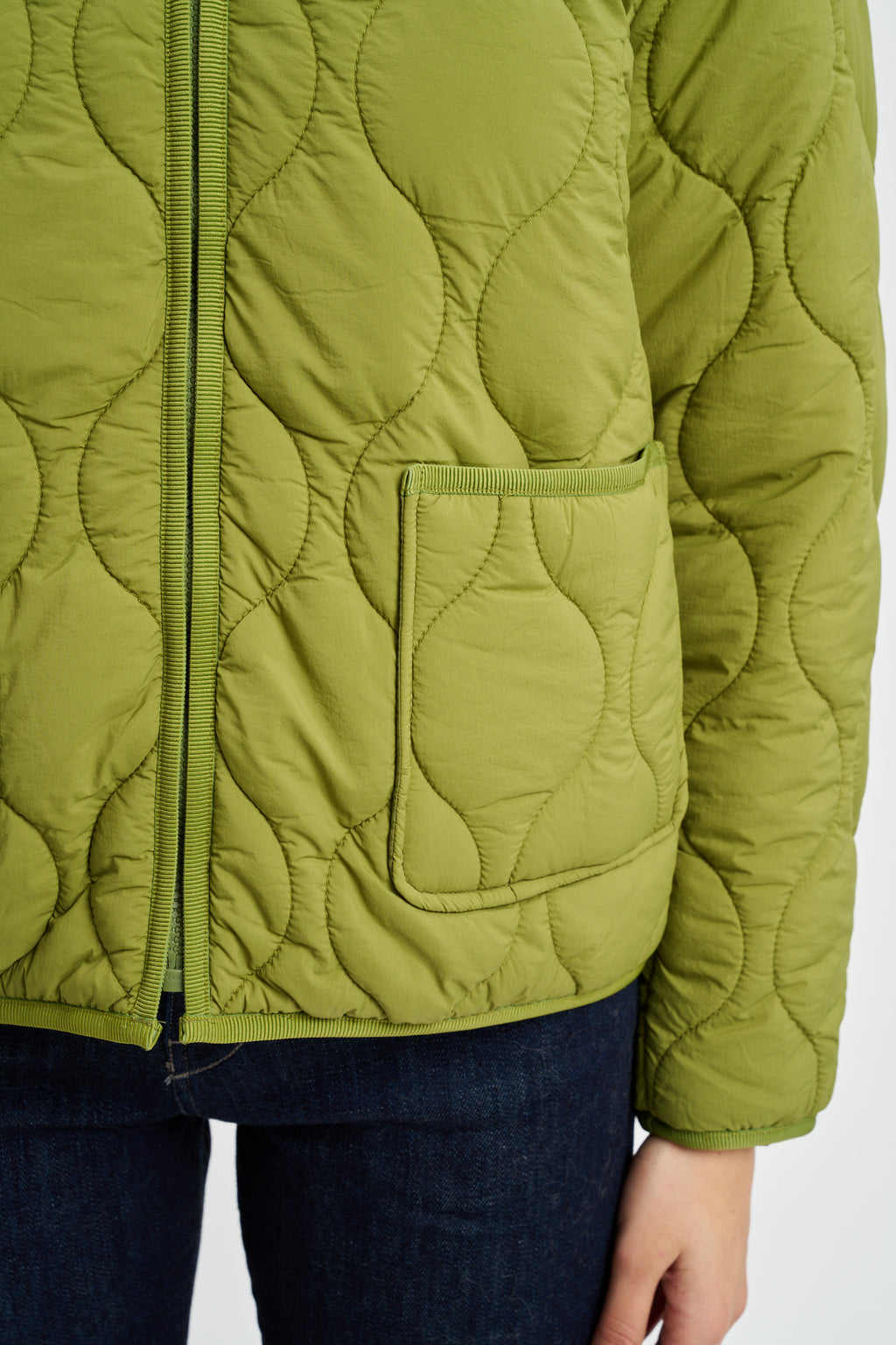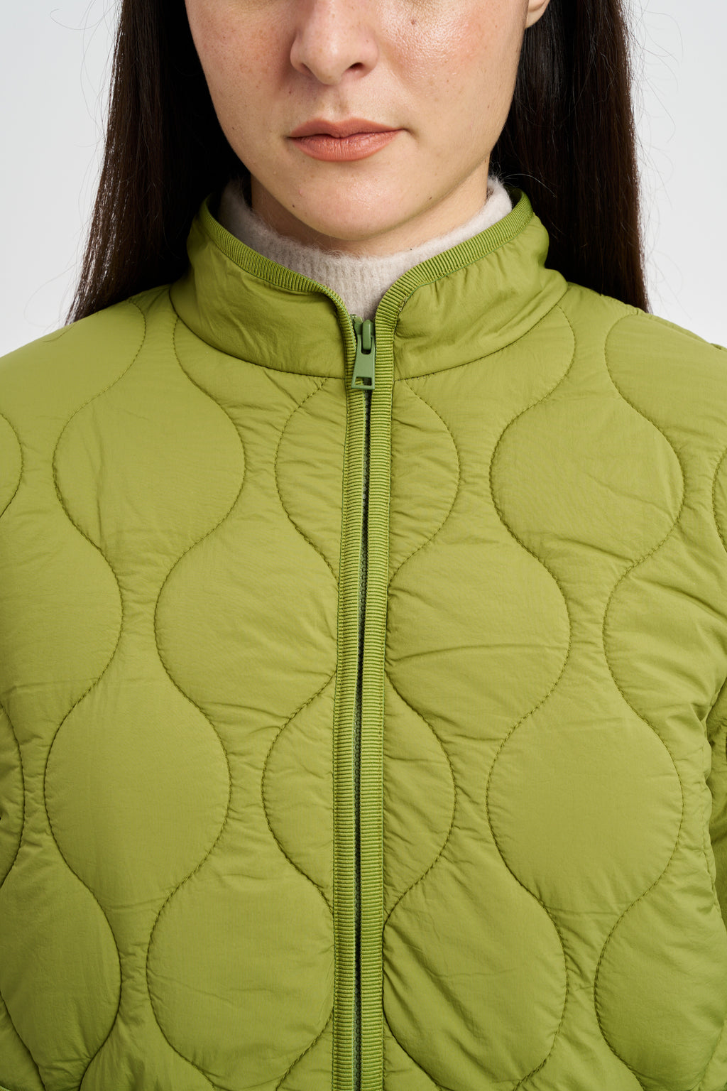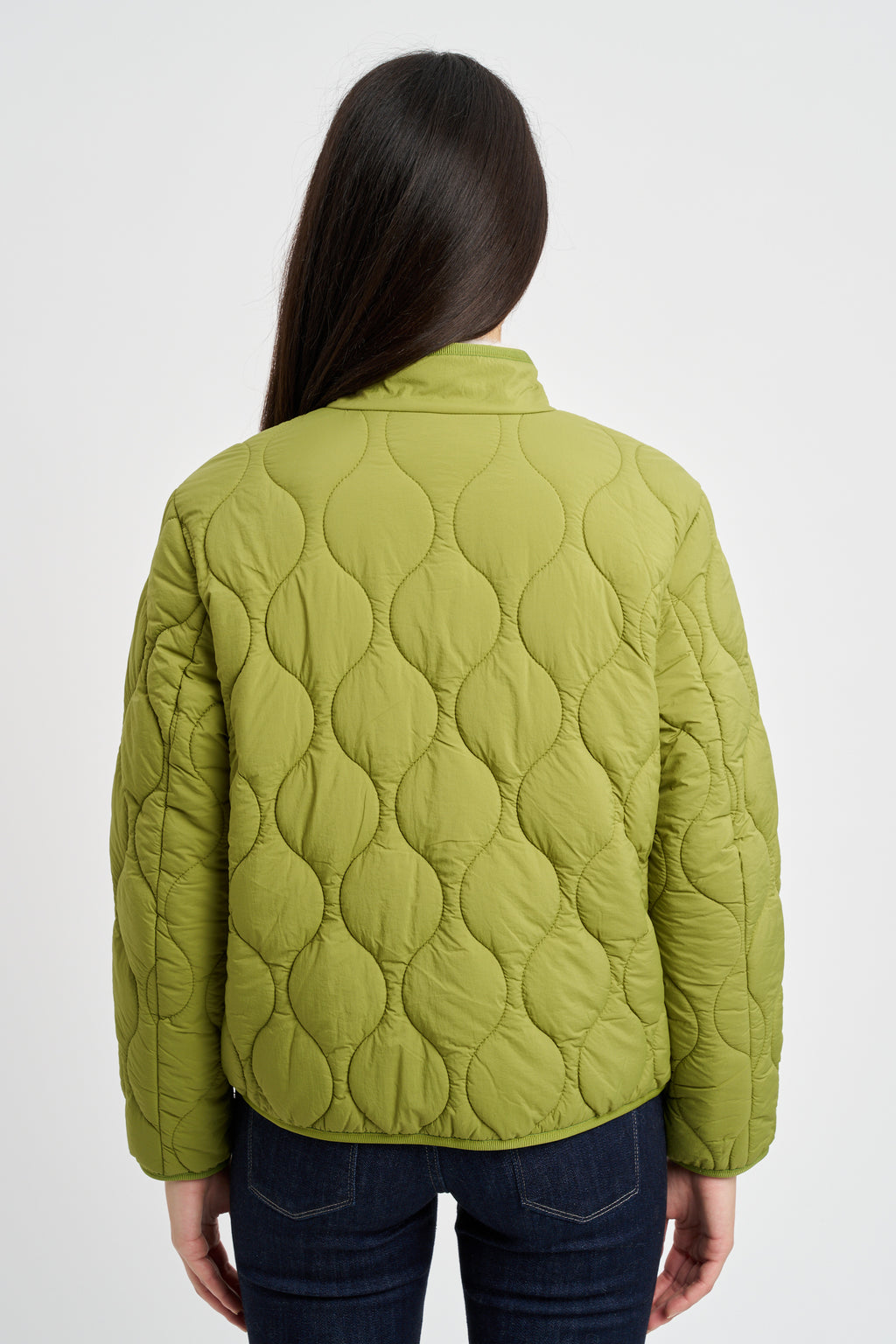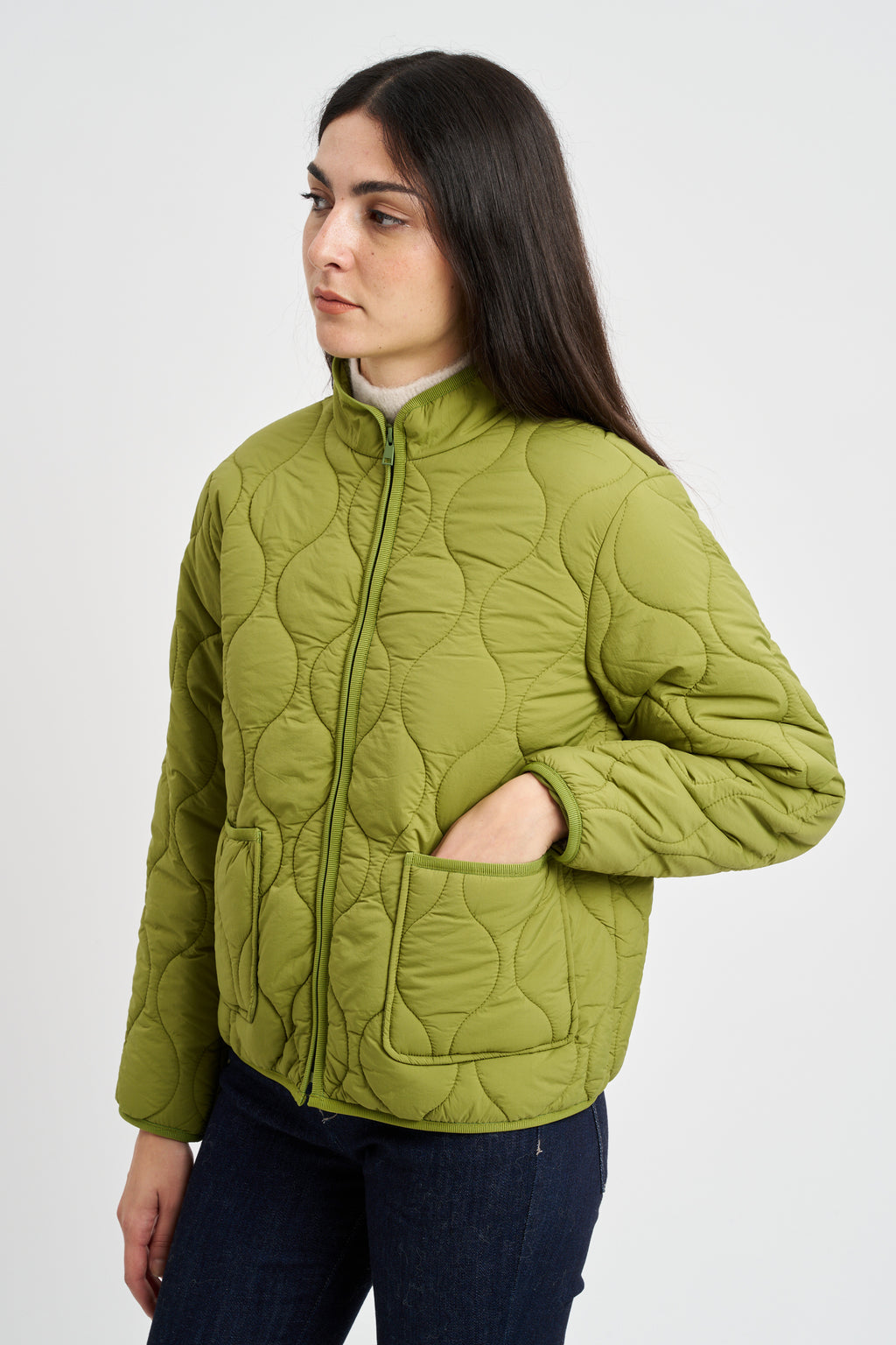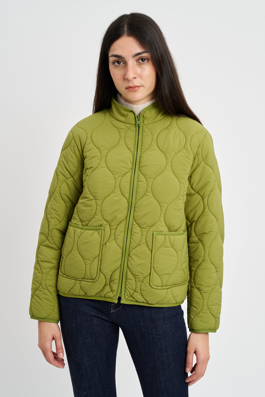 Giacca trapuntata in tessuto di nylon idrorepellente. Collo a fascetta, zip frontale e tasche applicate.