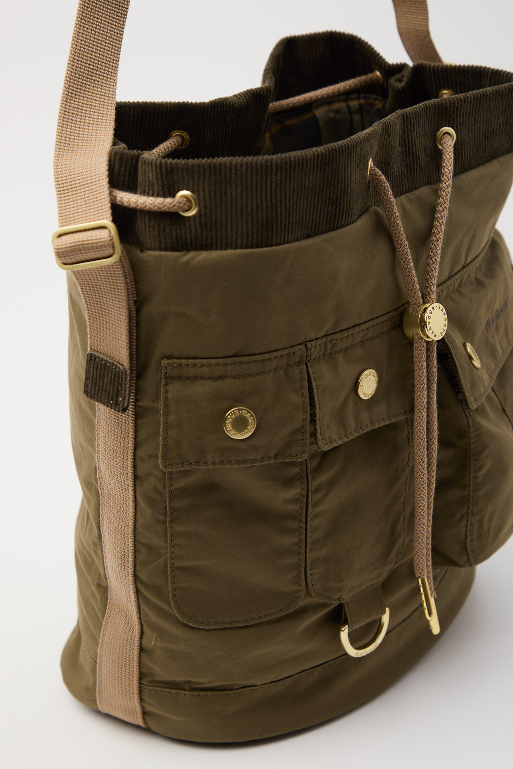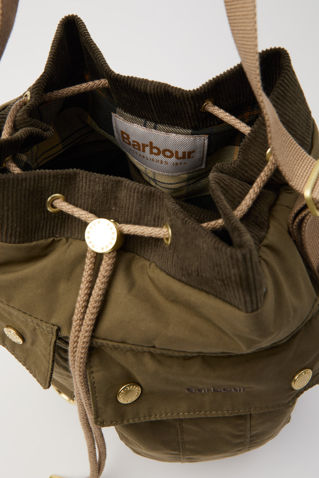 La borsa tote con coulisse Mia di Barbour è un accessorio versatile ed elegante realizzato in 100% cotone. Presenta una chiusura con coulisse, numerose tasche sulla parte esterna con finiture in tartan e a coste sottili e bottoni a pressione logati che regalano un vero tocco di classe. All'interno sono presenti due taschini per tenere in ordine i tuoi oggetti personali. Rifinita da un ricamo a contrasto sulla patta della tasca esterna, bottoni a pressione logati e un cordoncino regolabile, la borsa fonde alla perfezione praticità e l’intramontabile fascino di Barbour.