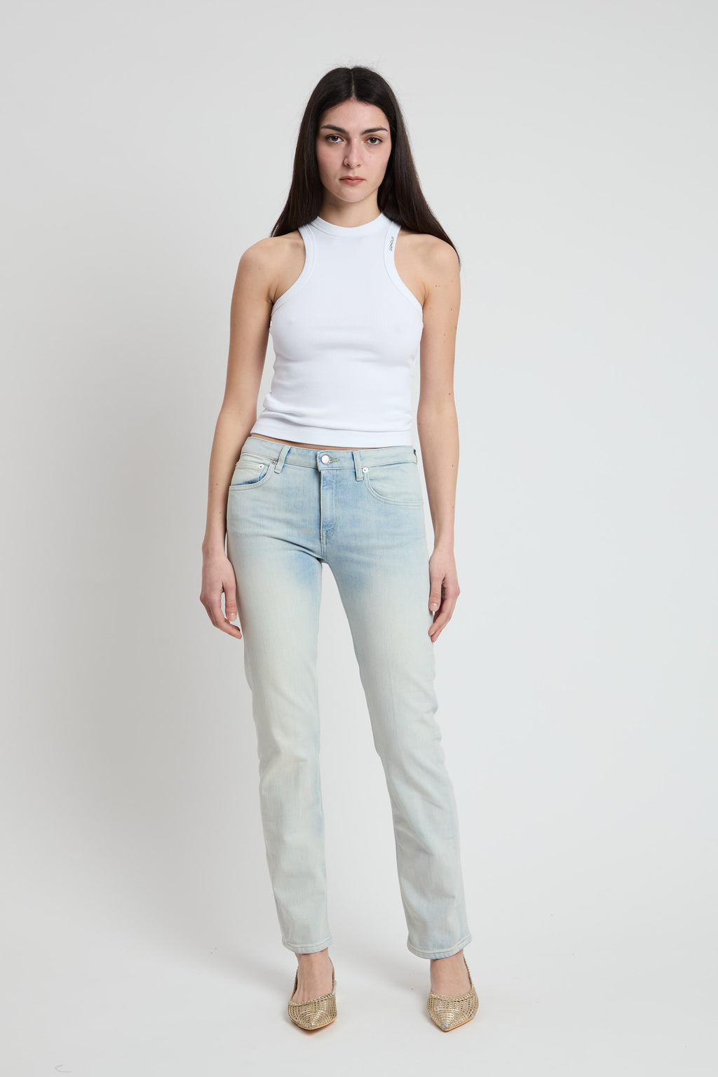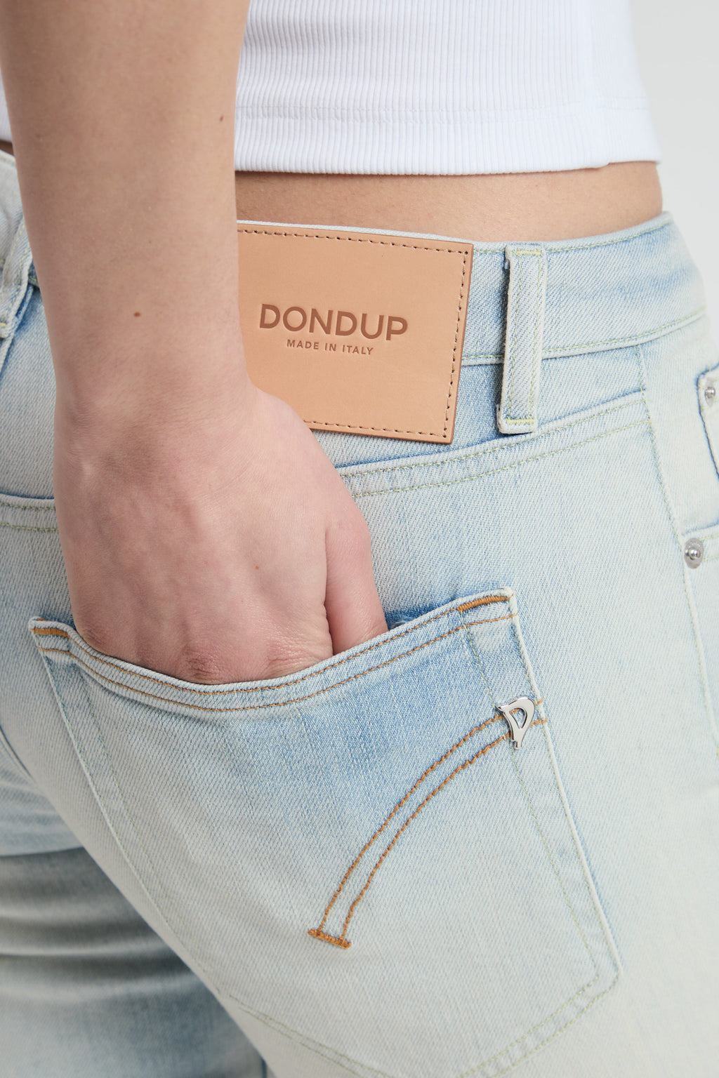 Jeans Coco cinque tasche slim fit, vita regolare, alto risvolto non fisso sul fondo. Bull stretch bluesign . Tintura in capo bluesign. Logo Dondup. Made in Italy