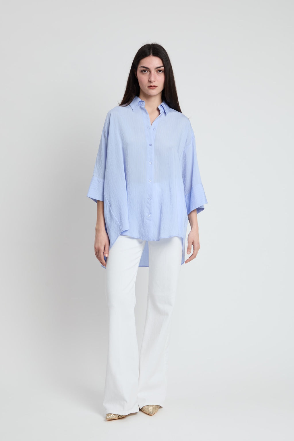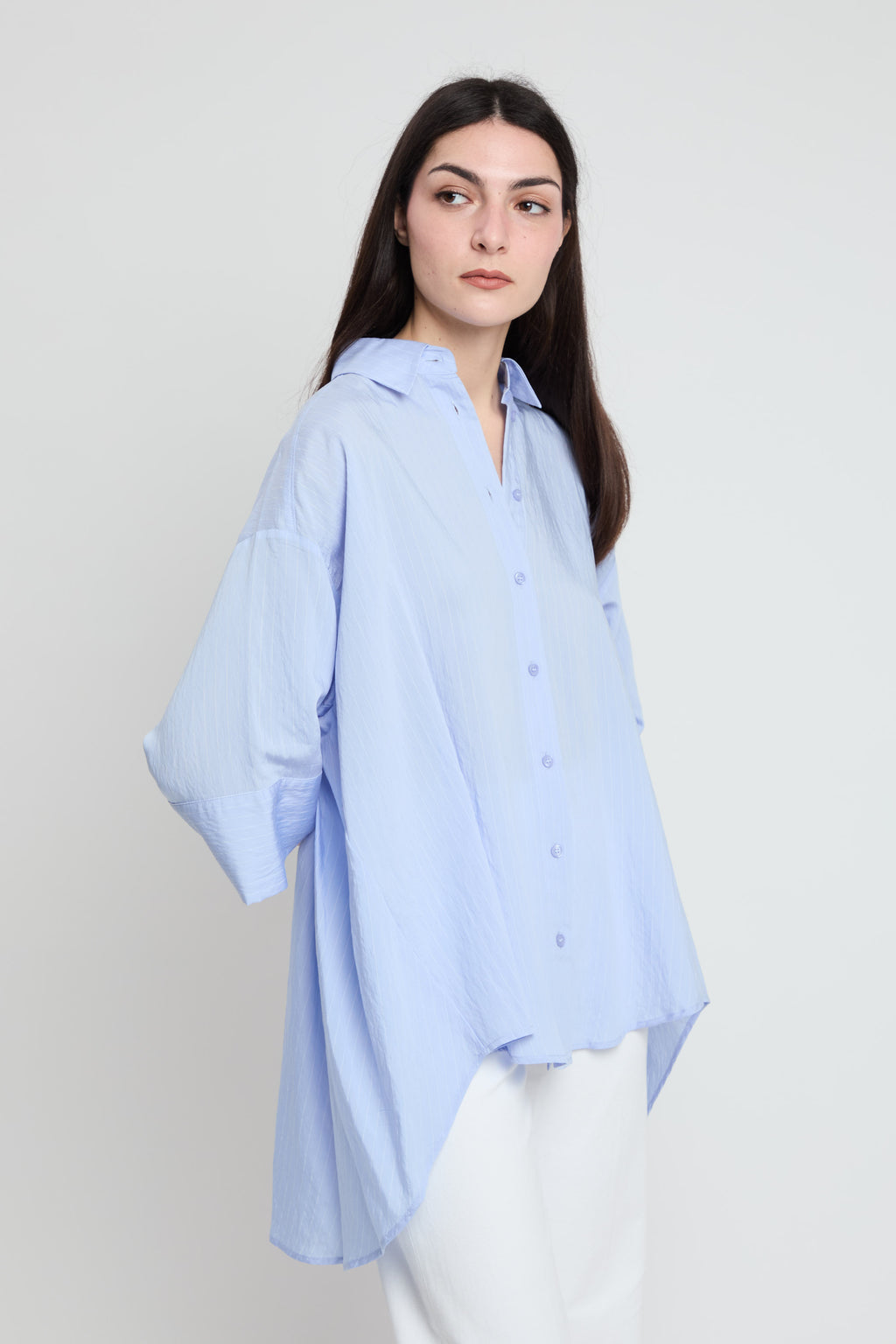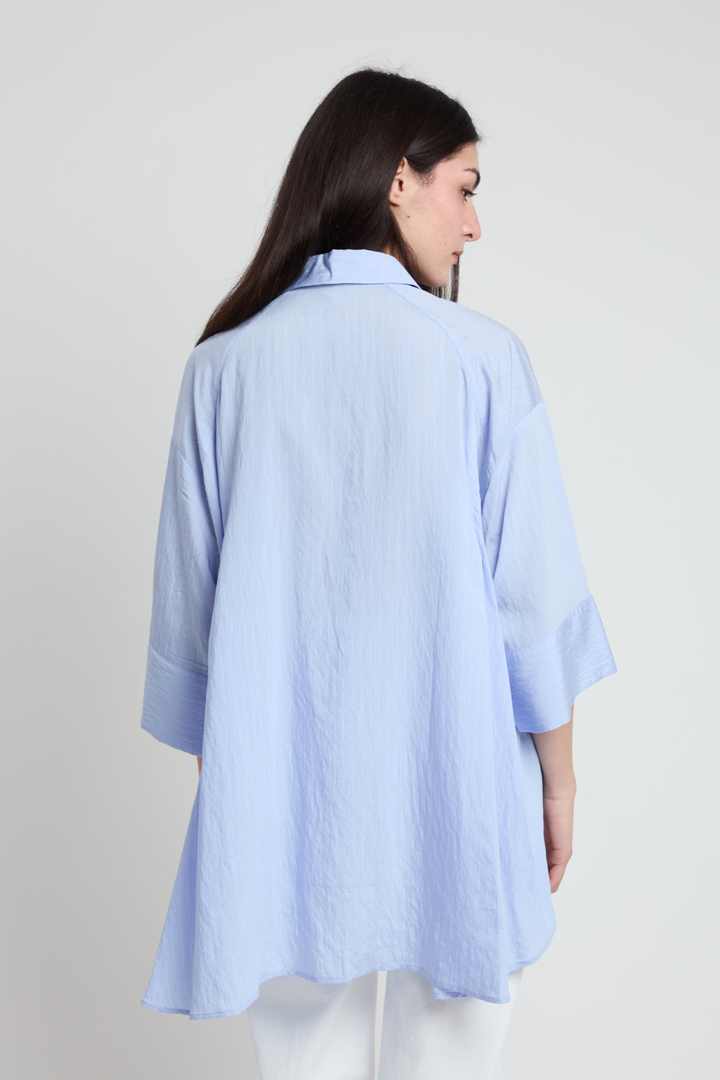 Camicia over più lunga dietro con fantasia leggerissima gessata
