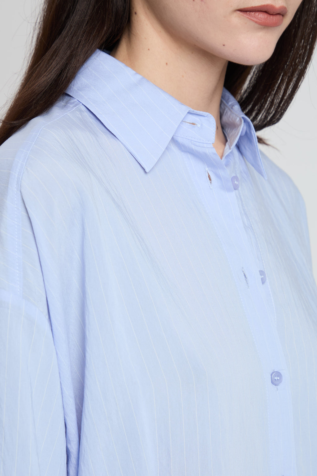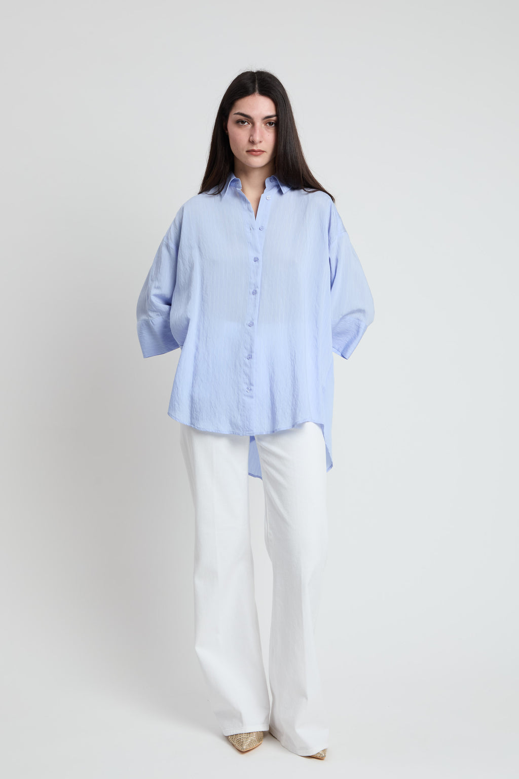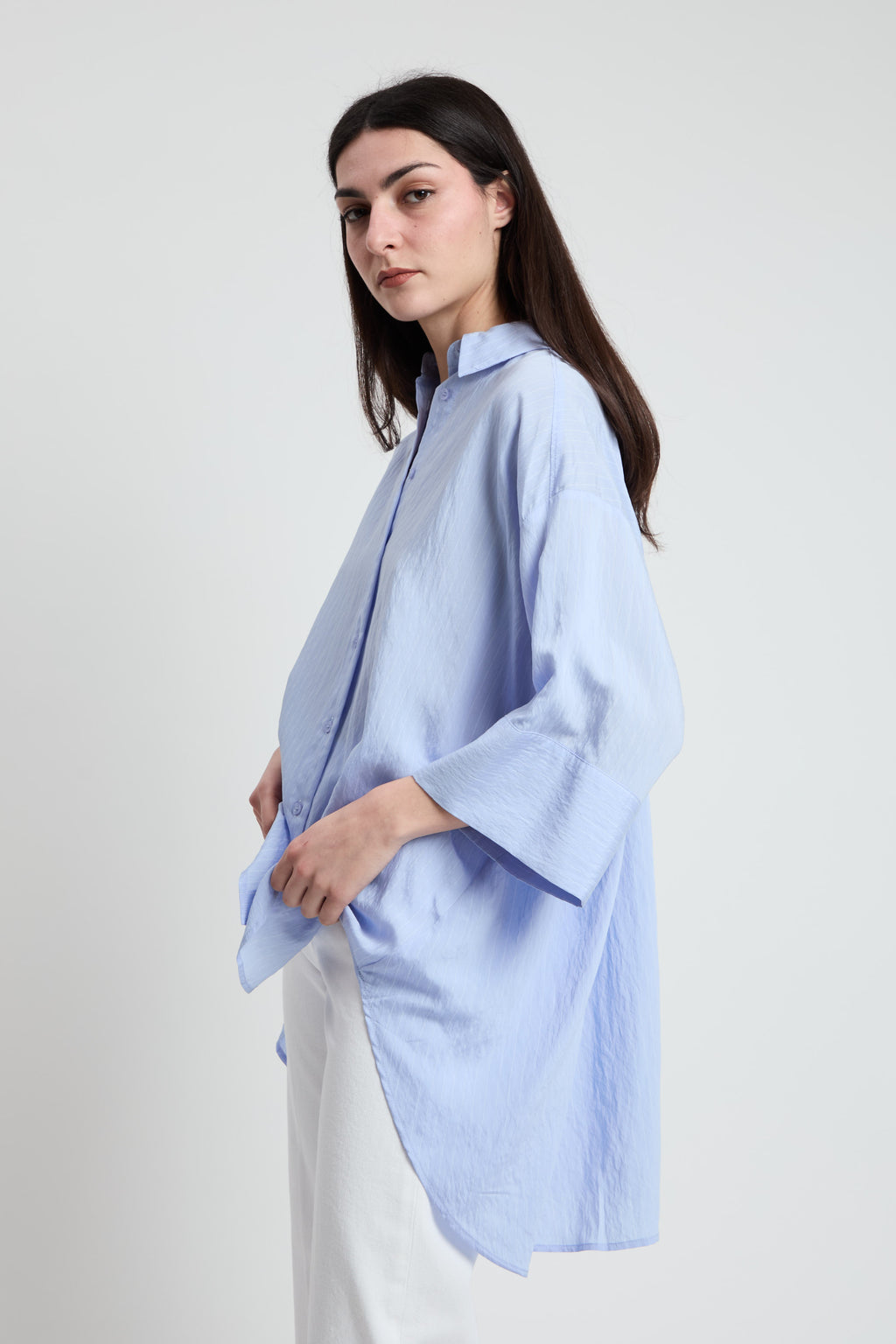 Camicia over più lunga dietro con fantasia leggerissima gessata