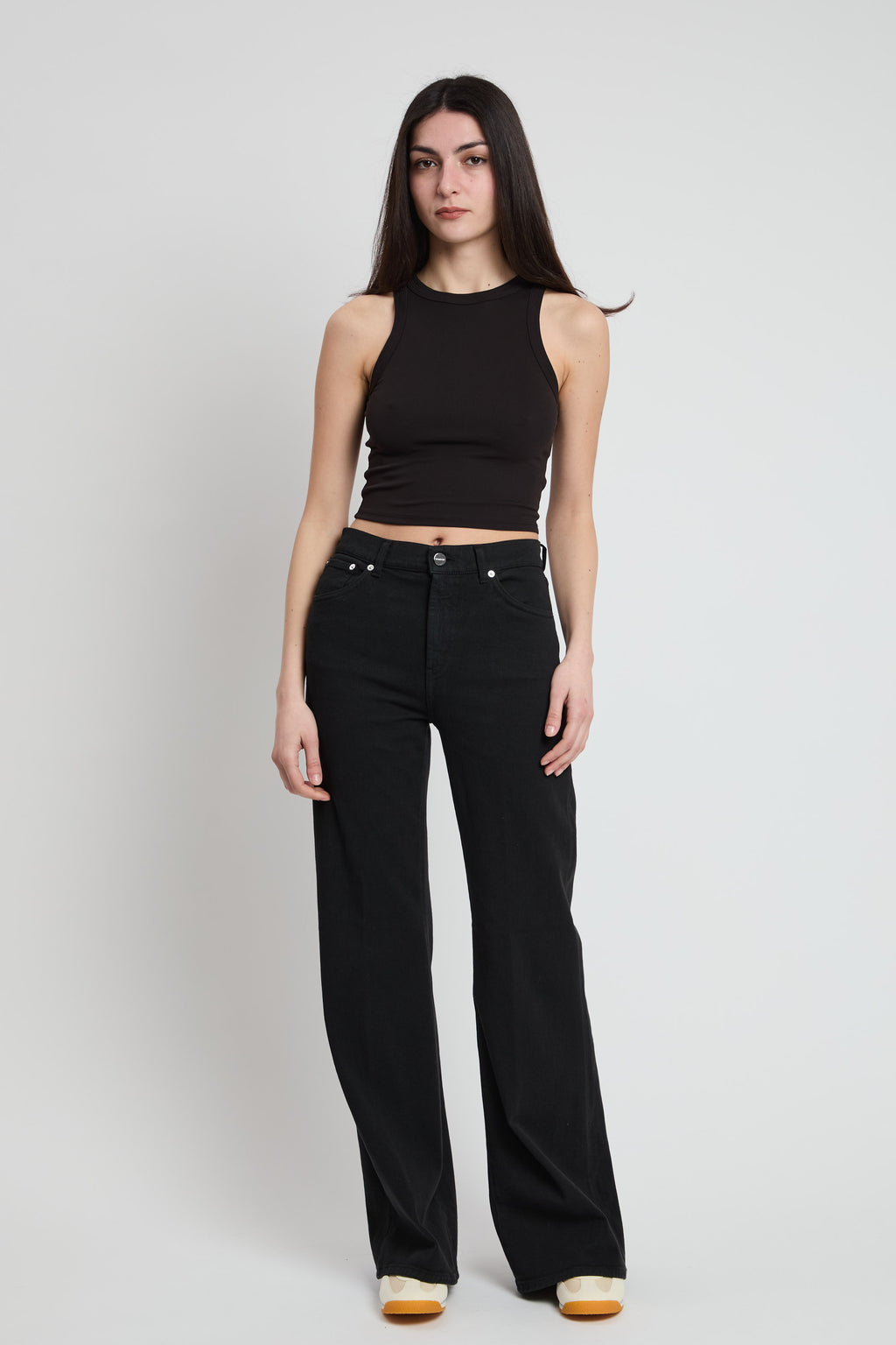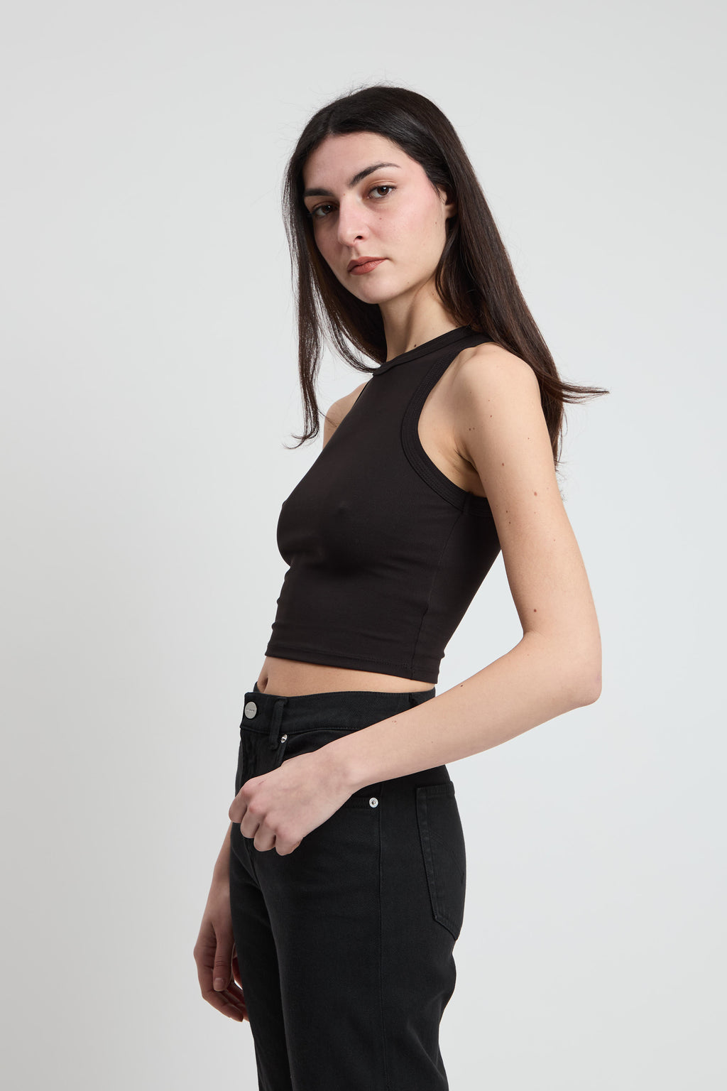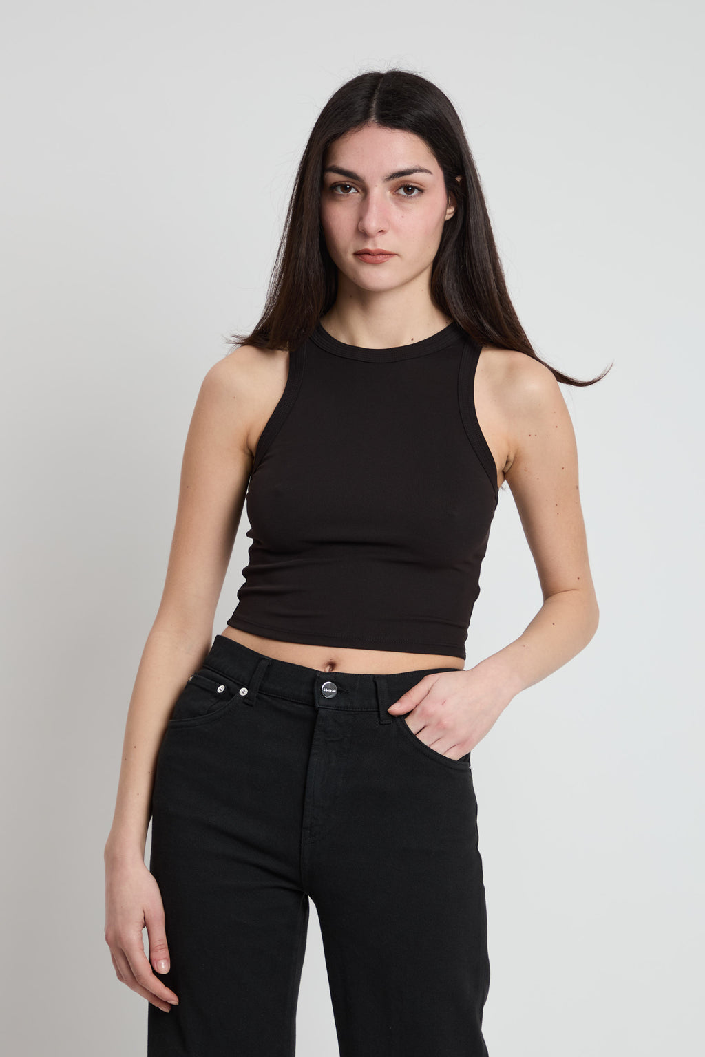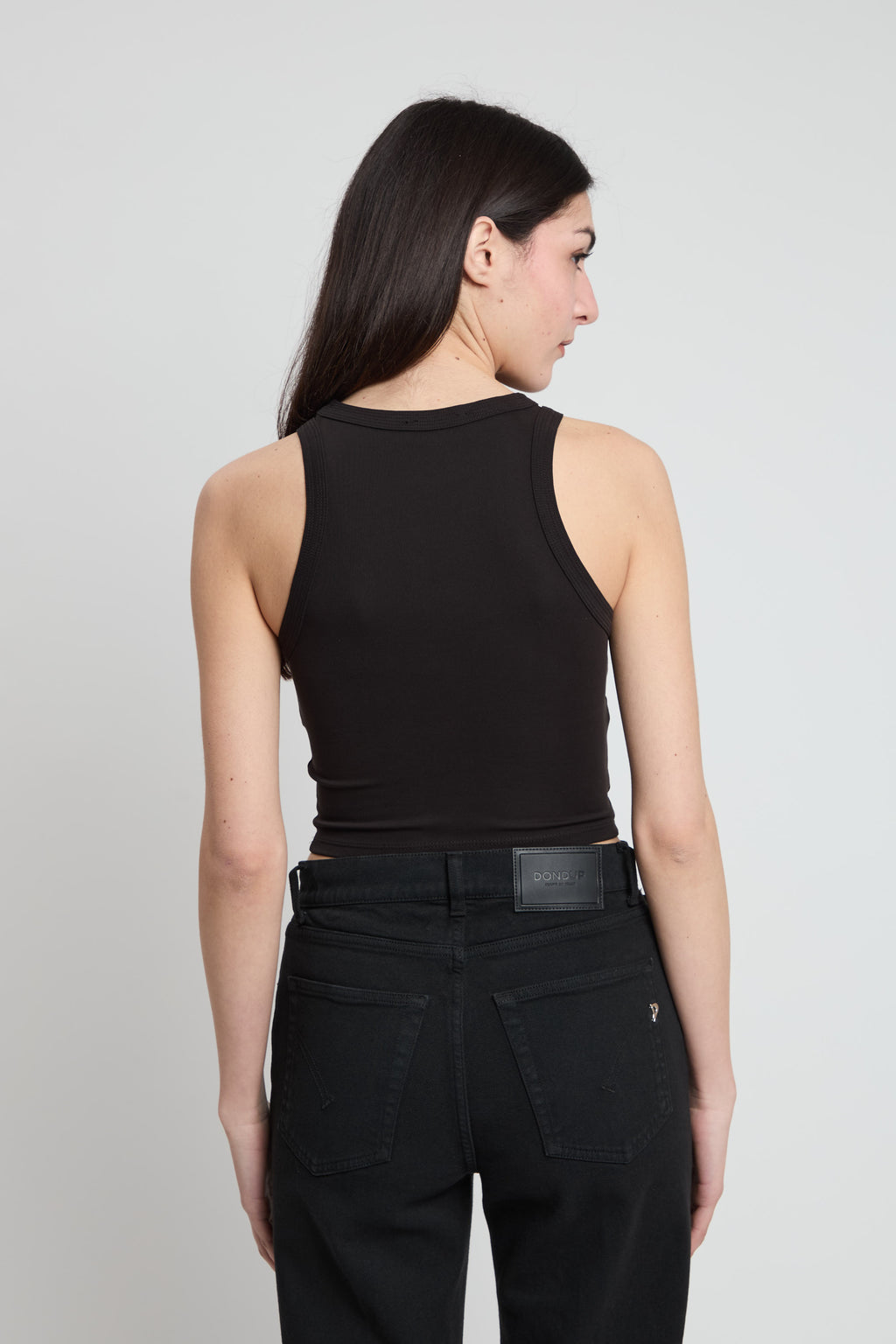 Top crop elasticizzato nero.