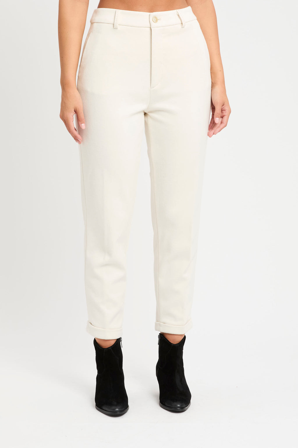I pantaloni chino donna New York Cozy sono realizzati in una morbida miscela di cotone, viscosa, nylon ed elastan. Con una vestibilità carrot e flessibile, il colore panna li rende perfetti per ogni occasione, dal lavoro alla serata informale.