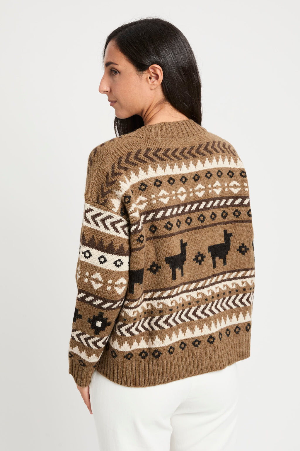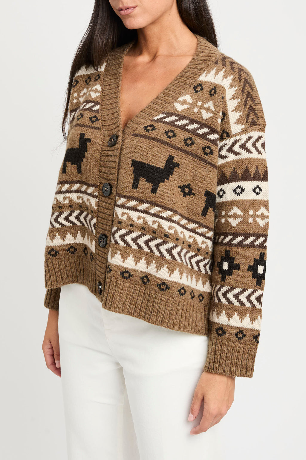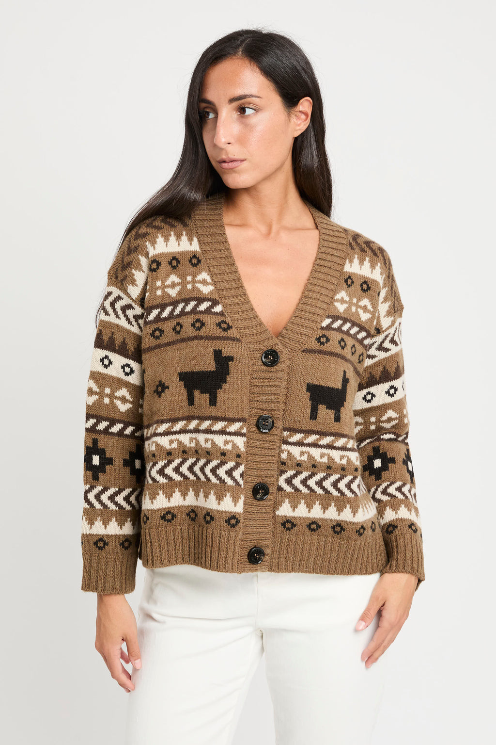 Cardigan overfit, impreziosito da una lavorazione jacquard all over.