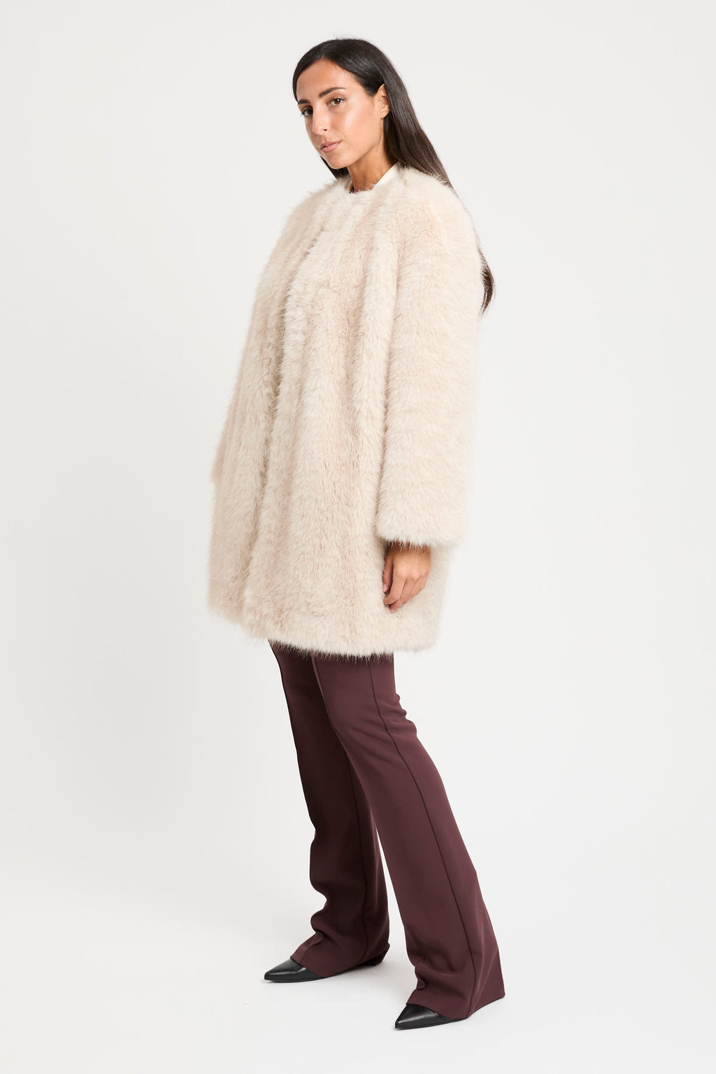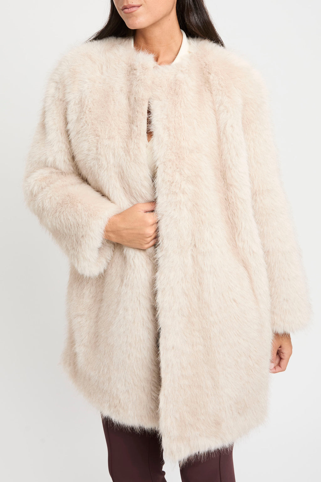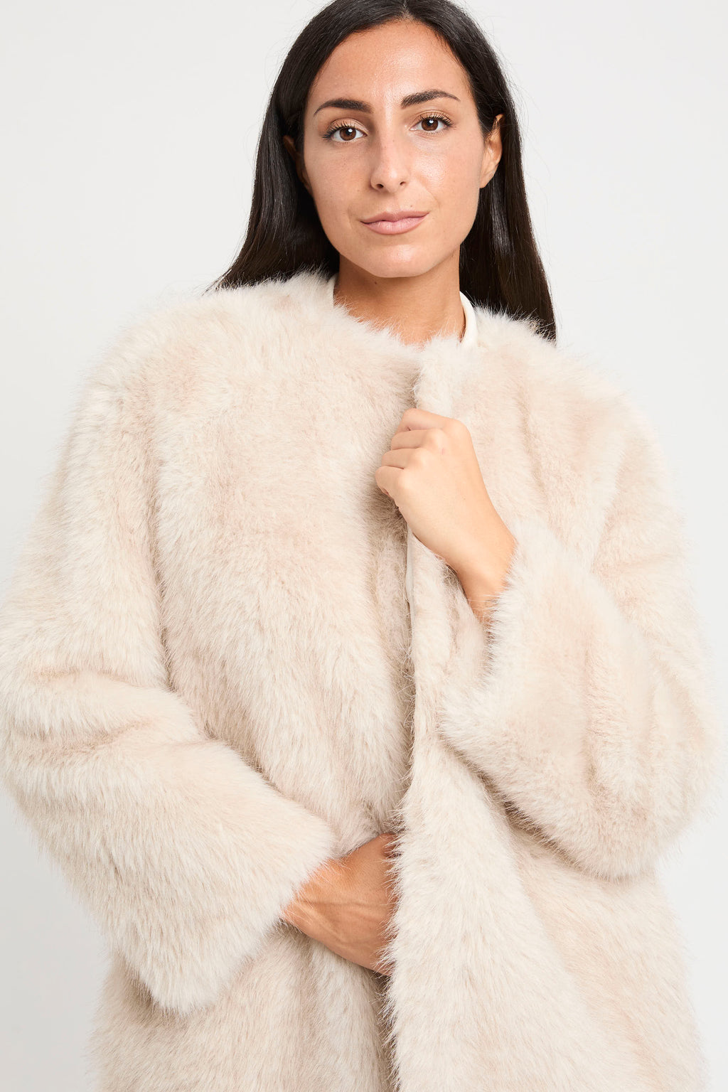 • Cappotto in tessuto dall’effetto faux fur