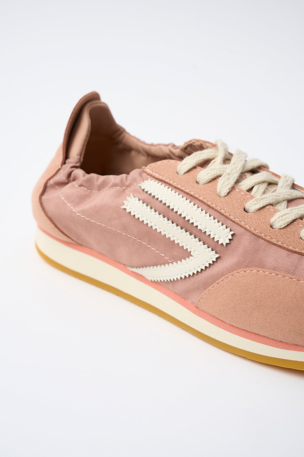 PURAAI PANTHER PEACH MILK 1127 combina eleganza e versatilità in una sneaker dal design sofisticato. Realizzata in nylon e microsuede rosa antico, presenta un logo bianco sporco che contrasta delicatamente con i dettagli coordinati. La suola multicolore – rosa, beige chiaro e miele – garantisce comfort e stabilità, mentre i doppi lacci in rosa e beige chiaro consentono una personalizzazione della vestibilità. Un modello che unisce qualità costruttiva ed estetica contemporanea, perfetto per chi ricerca una scarpa che sappia distinguersi con discrezione.