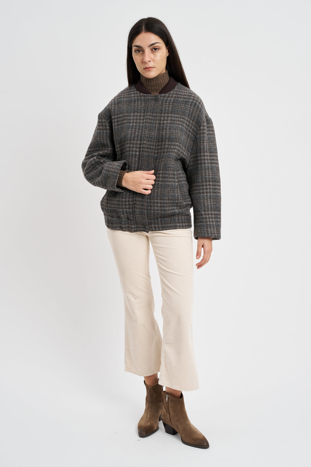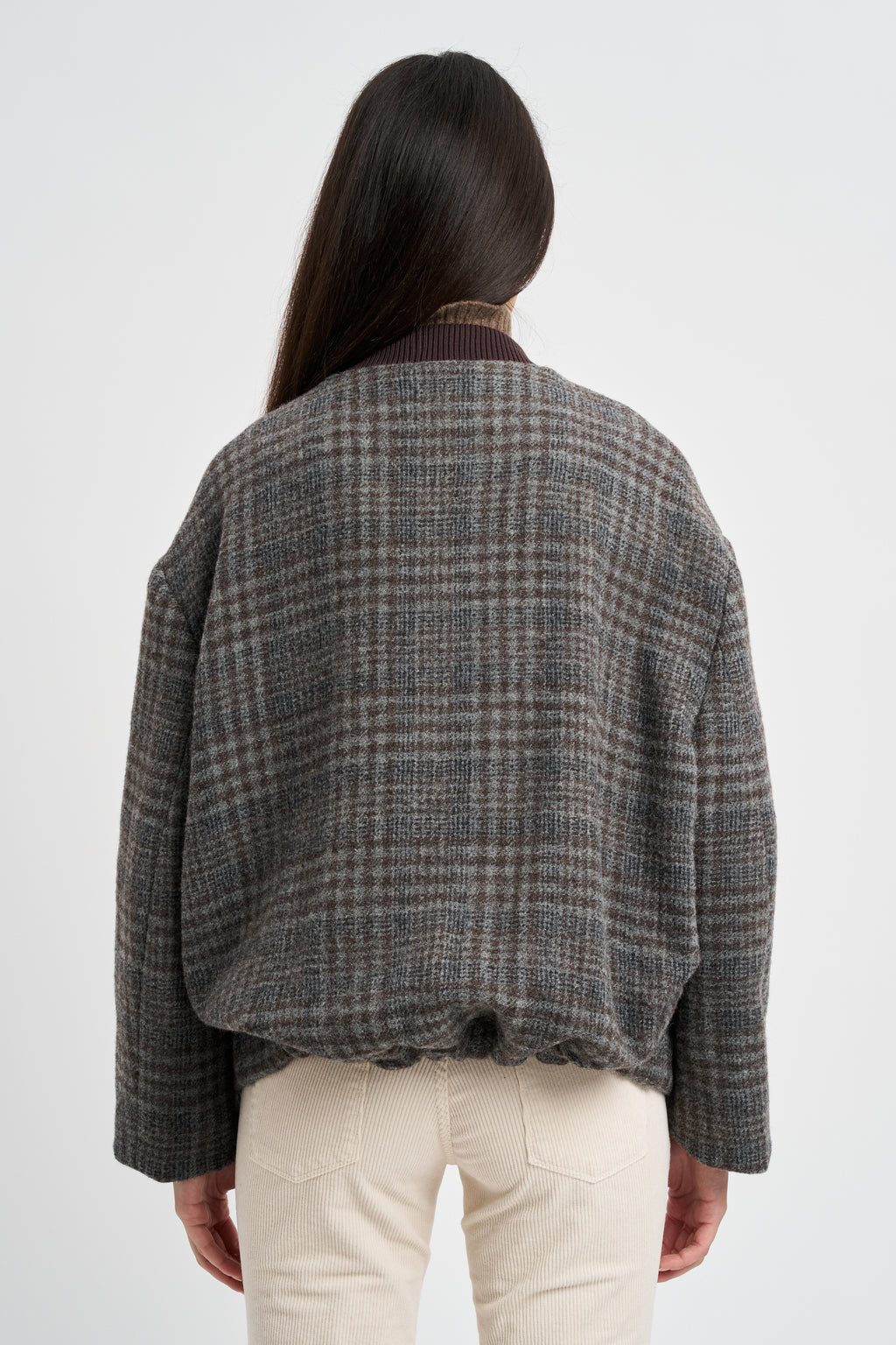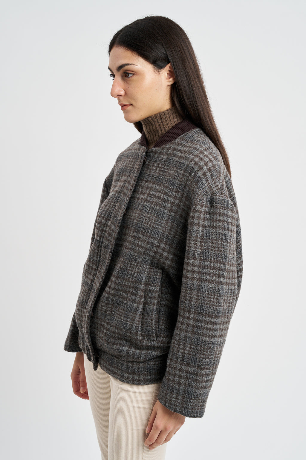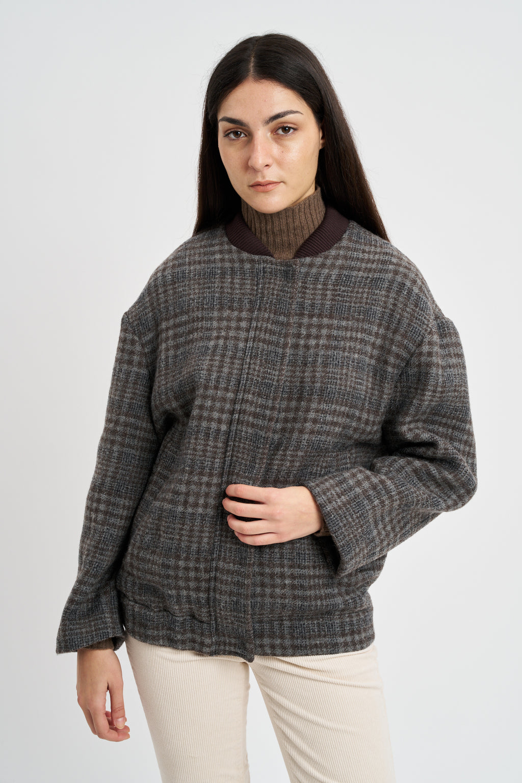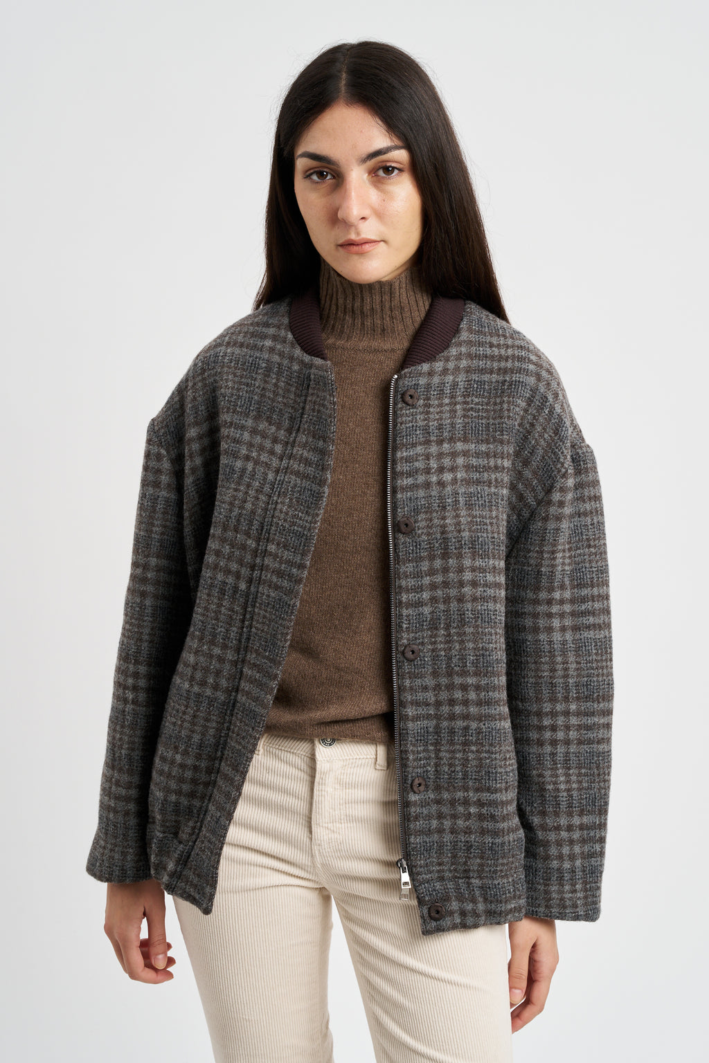 Giubbino Bomber in misto lana viscosa stampa principe di galles check.