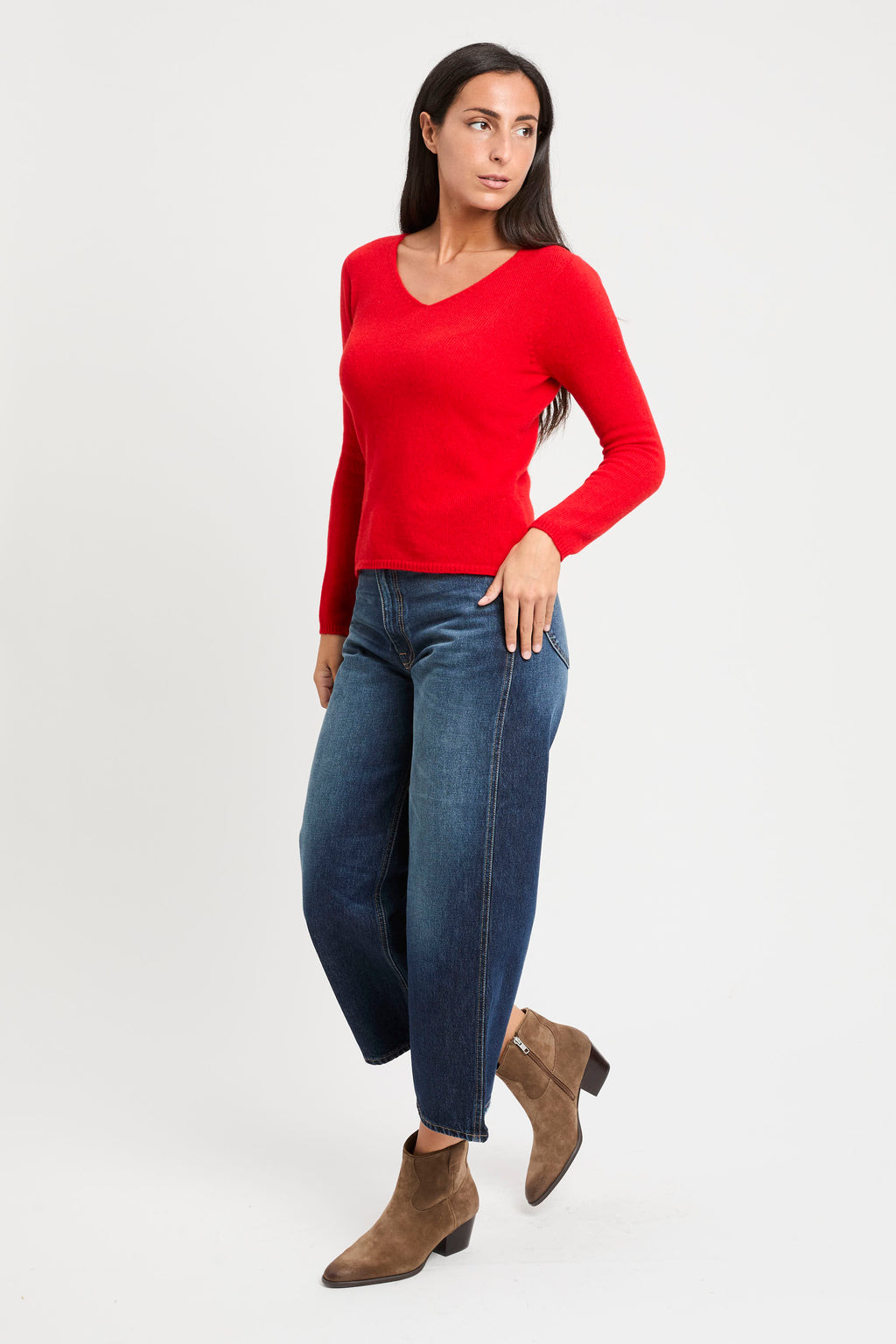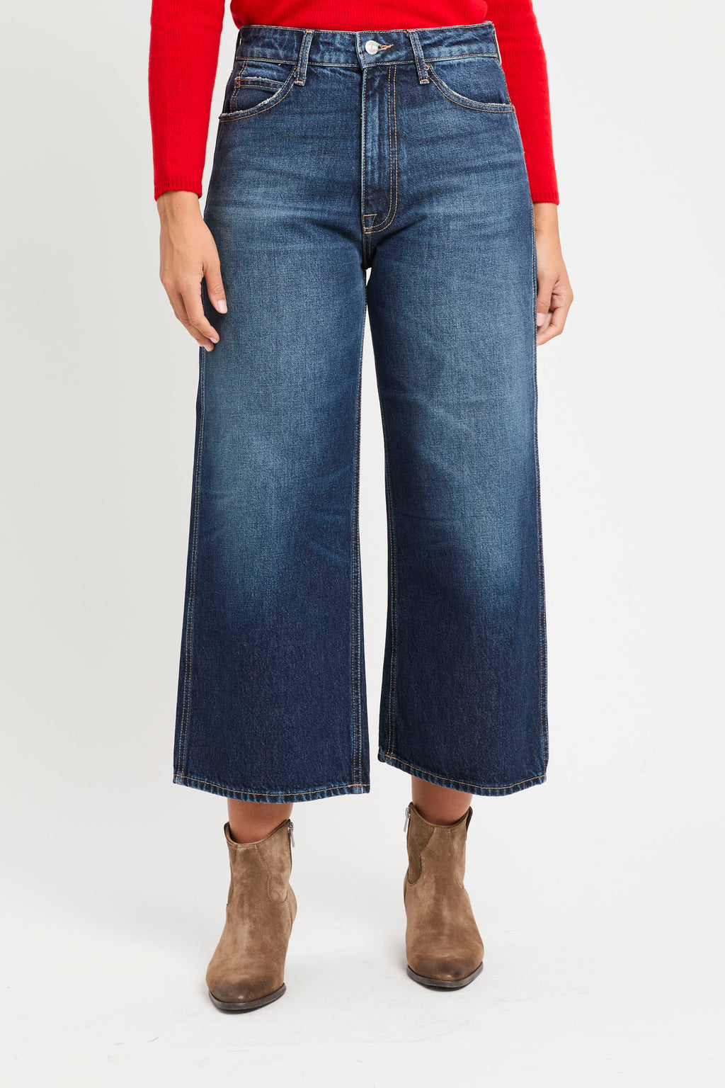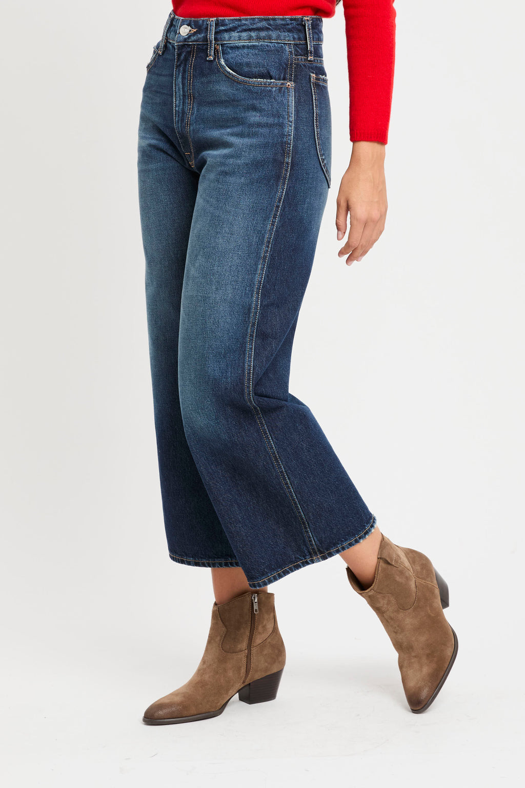 Denim modello 5 tasche cropped vita regolare lavaggio medio.