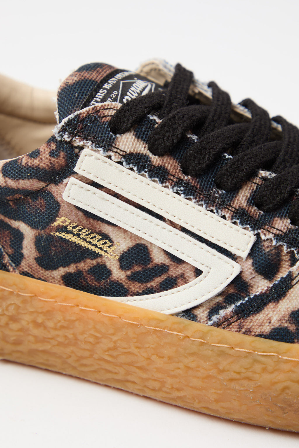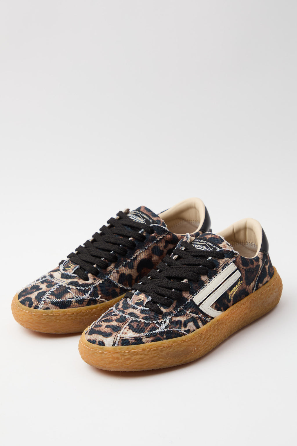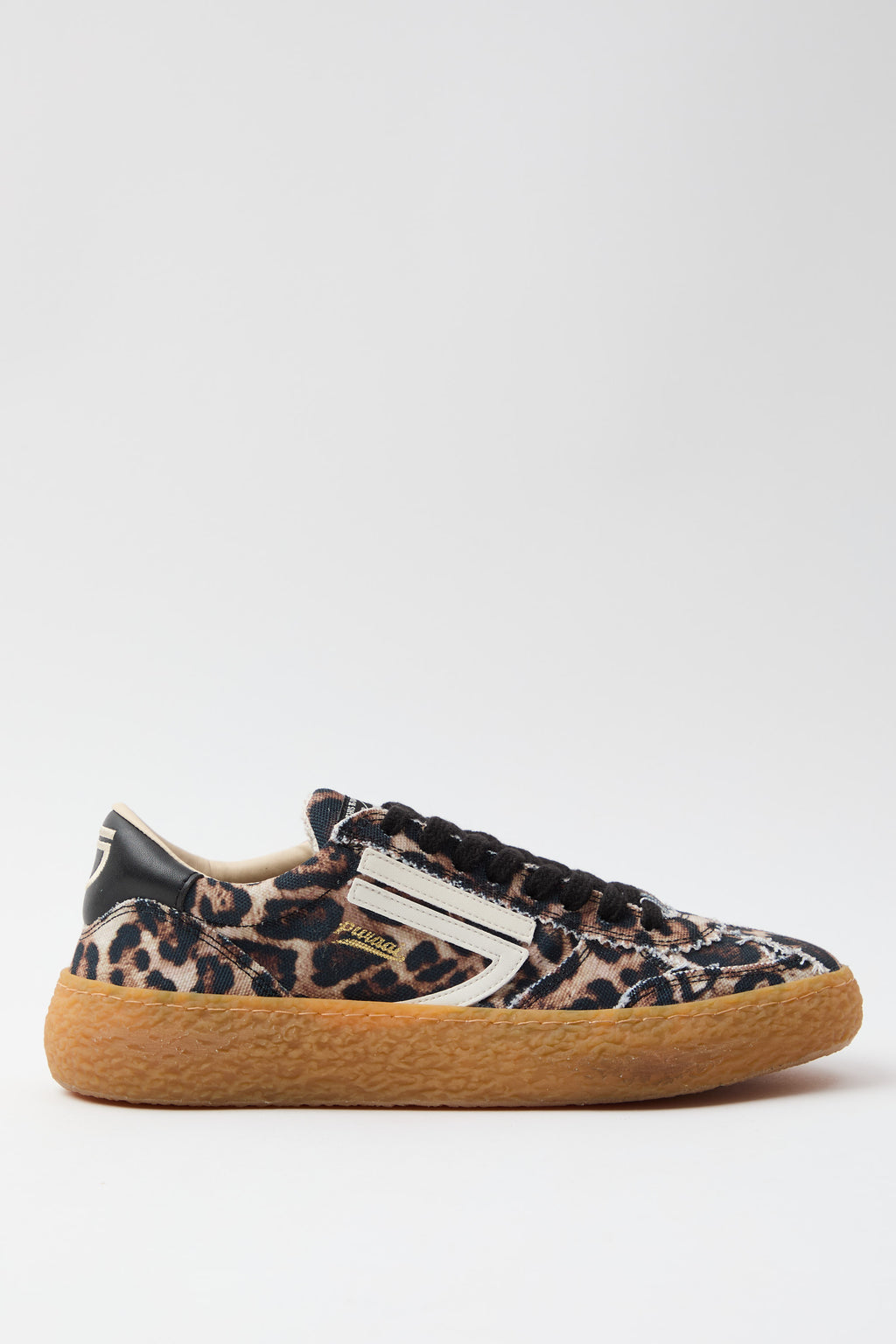 Sneaker vintage con traforato elegante e stampa leopardata che cattura lo stile retrò. Il logo in avorio contrasta perfettamente con i dettagli neri, creando un'estetica sofisticata e ricercata. La suola ambrata aggiunge calore e carattere, mentre i lacci neri garantiscono un'allacciatura sicura e una finitura pulita. Un modello che unisce comfort e personalità, ideale per chi apprezza i dettagli curati e desidera un'alternativa distintiva alle sneaker classiche.