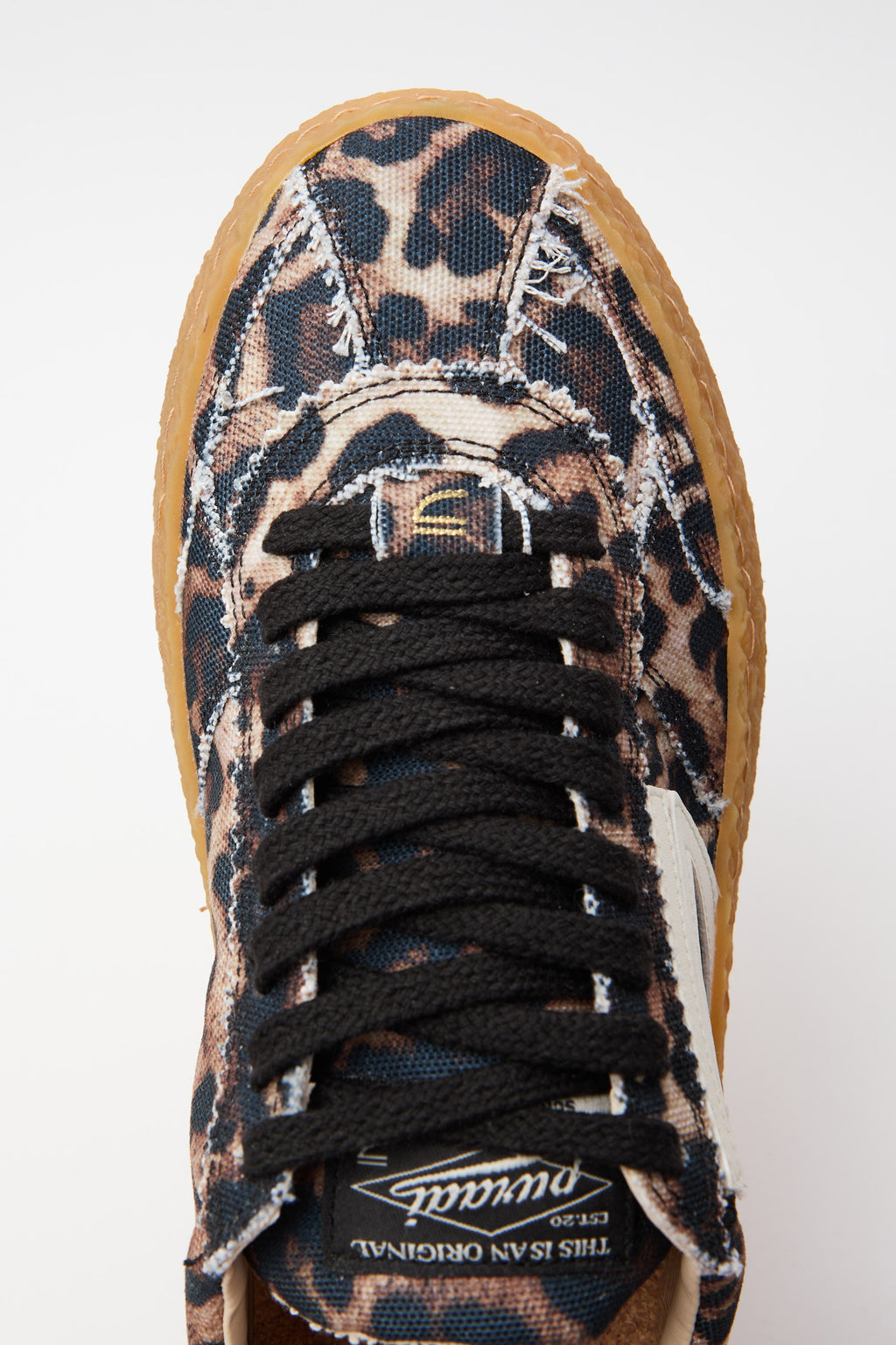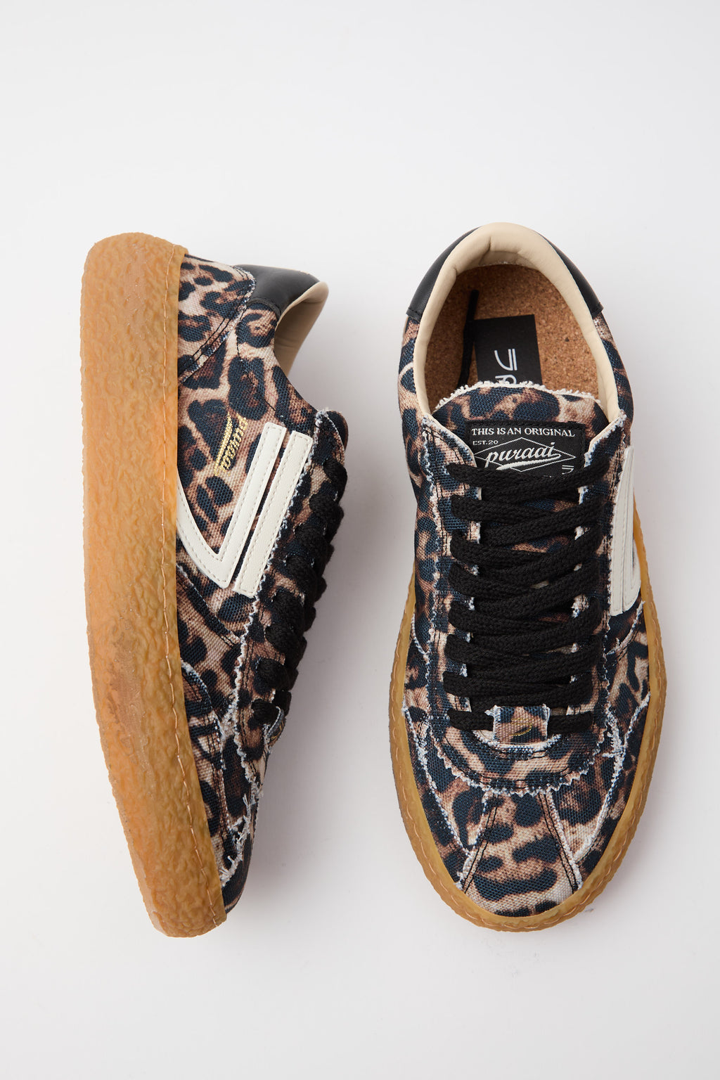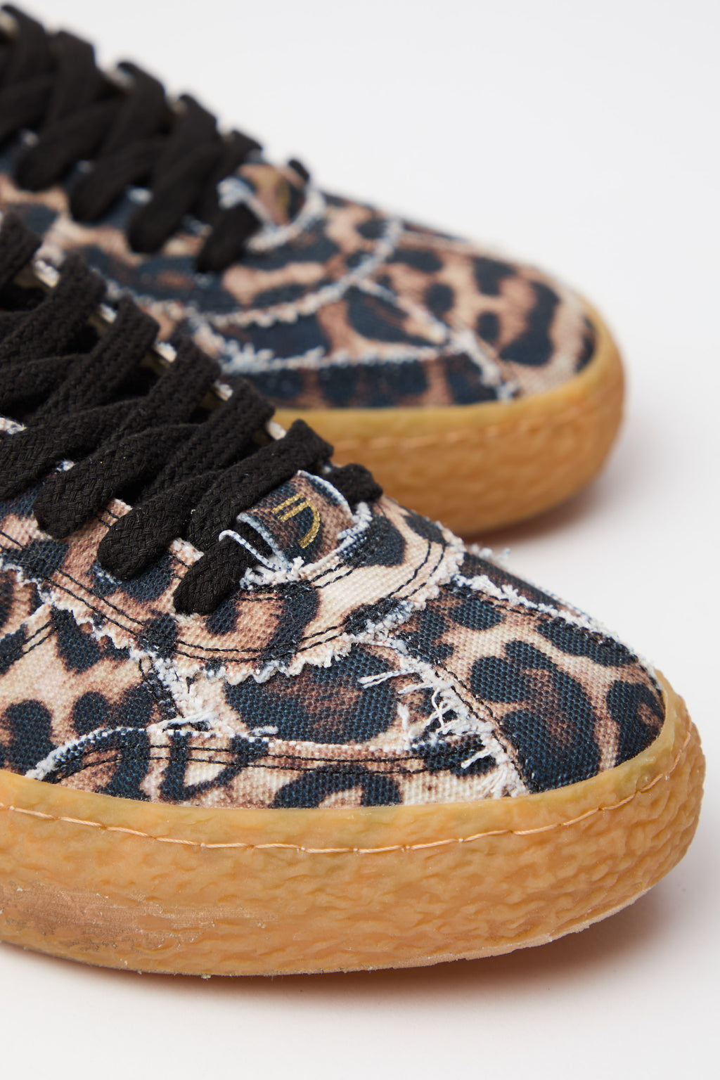 Sneaker vintage con traforato elegante e stampa leopardata che cattura lo stile retrò. Il logo in avorio contrasta perfettamente con i dettagli neri, creando un'estetica sofisticata e ricercata. La suola ambrata aggiunge calore e carattere, mentre i lacci neri garantiscono un'allacciatura sicura e una finitura pulita. Un modello che unisce comfort e personalità, ideale per chi apprezza i dettagli curati e desidera un'alternativa distintiva alle sneaker classiche.